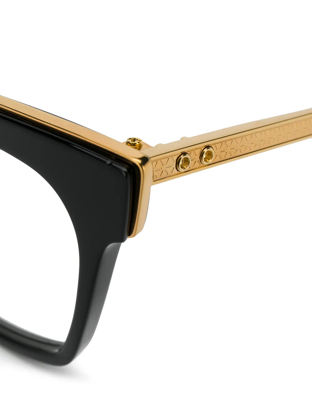 Очки в оправе 'кошачий глаз' от Dita Eyewear. Оправа 'кошачий глаз', прямой мост, логотип на дужке и прямые дужки с остро изогнутыми концами. Цвет: черный. Прилагается защитный чехол.