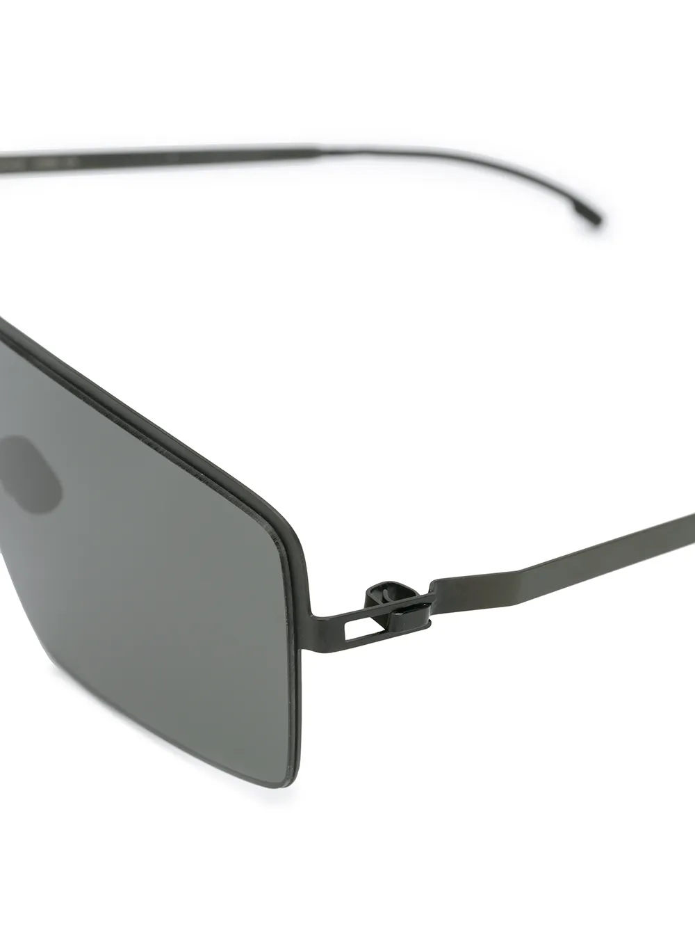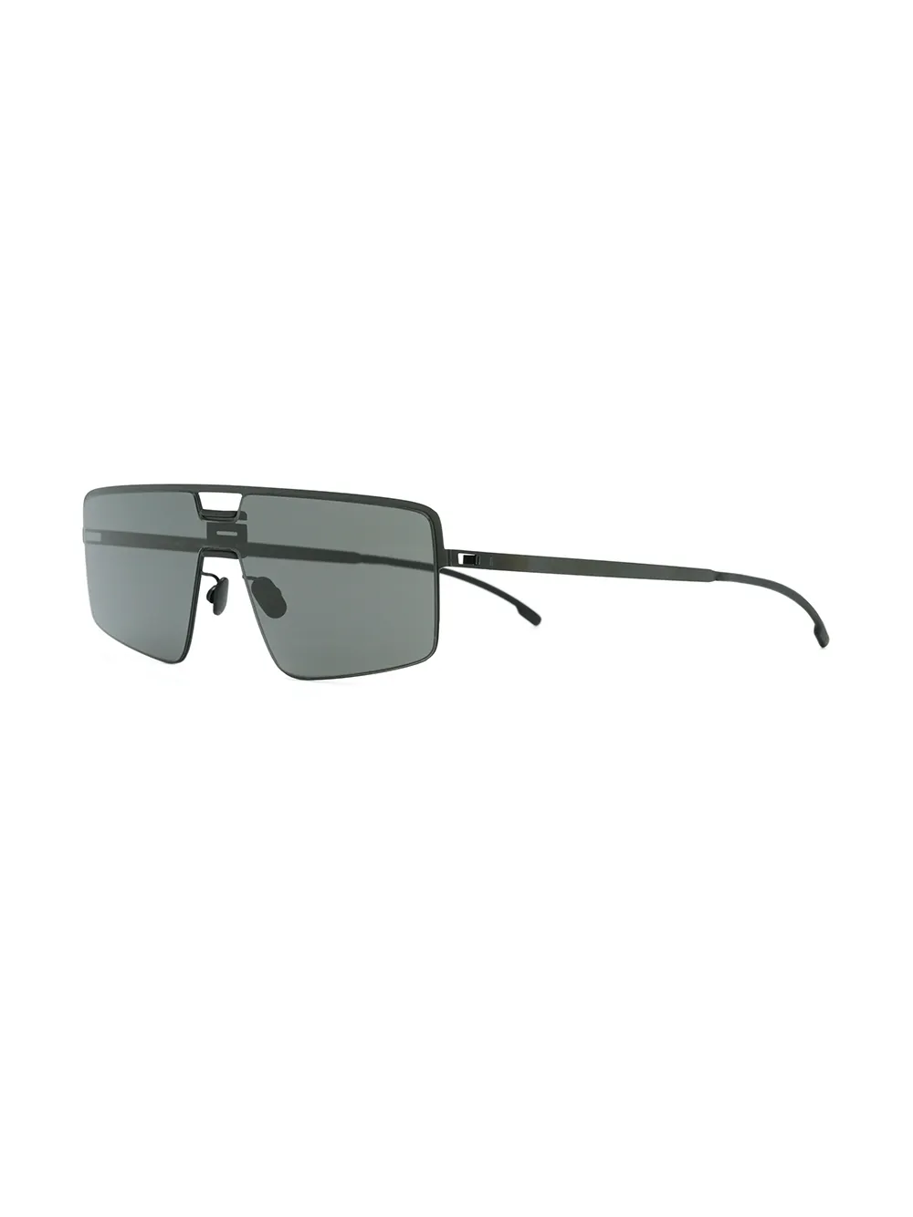 Солнцезащитные очки Soy от Mykita. Легкая конструкция, затемненные линзы, nose pads, прямые дужки с остро изогнутыми концами и 100% защита от ультрафиолета А и В. Цвет: черный. Прилагается защитный чехол.