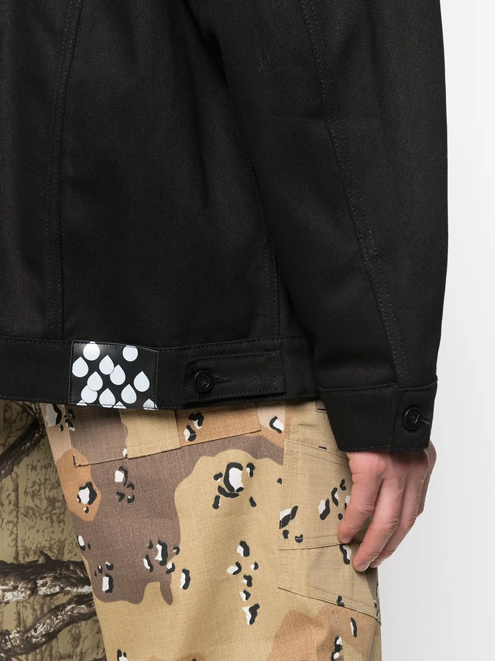 Классический воротник, длинные рукава, манжеты на пуговицах, нашивка с логотипом сзади, застежка на пуговицах спереди и два нагрудных кармана с клапанами. Цвет: черный.