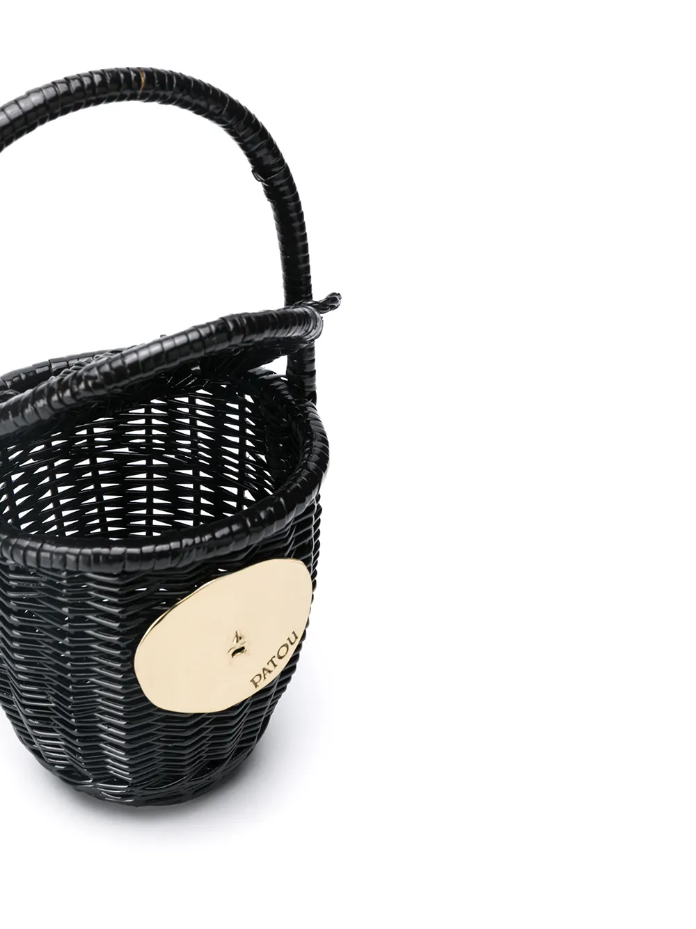 Плетеная сумка-ведро от Patou. Закругленная ручка, золотистый металлический логотип и главный внутренний отдел. Цвет: черный.