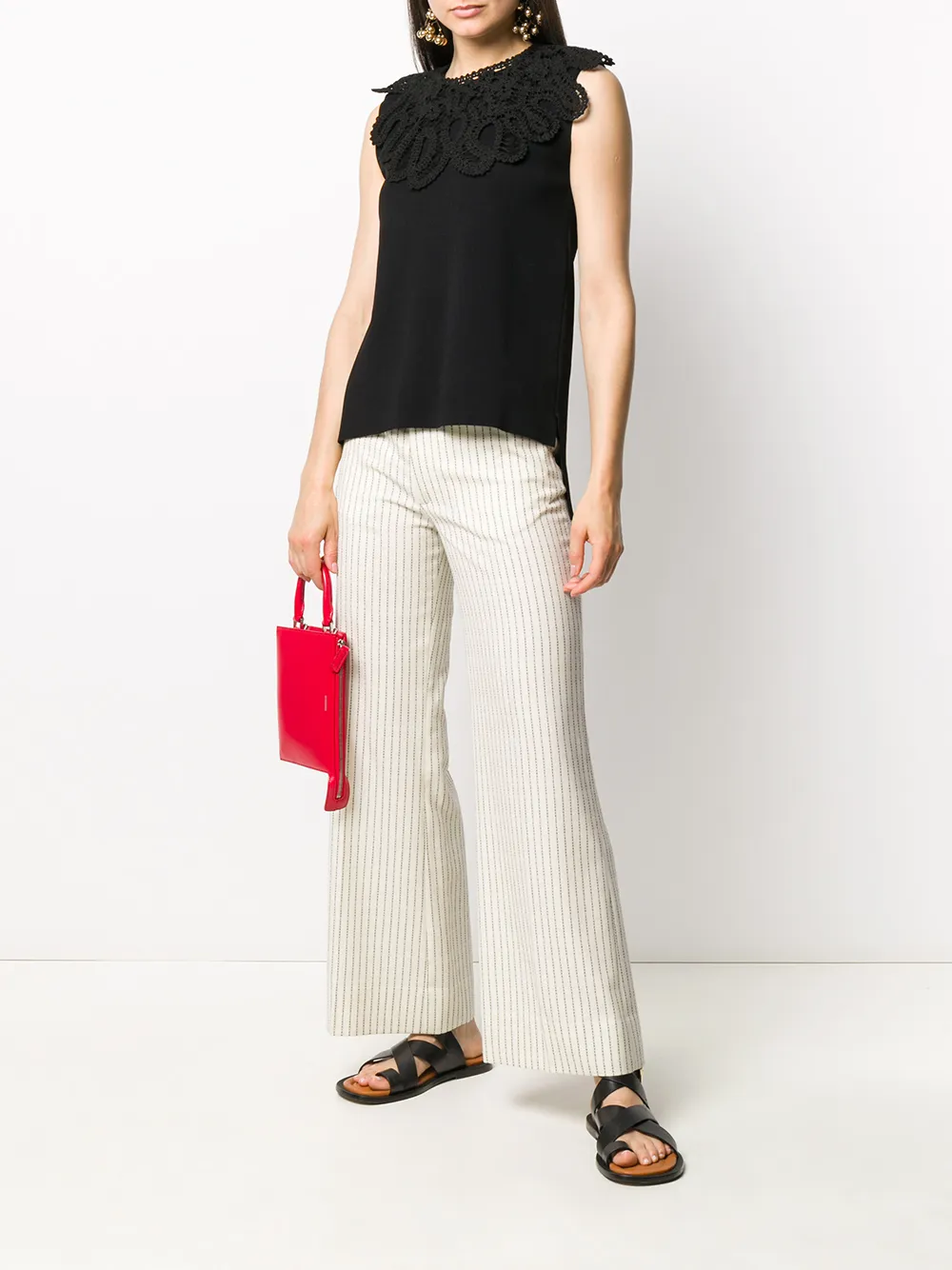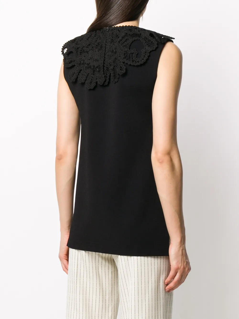 Топ без рукавов с вышивкой от Jil Sander (Жиль Сандер). Вышивка, без рукавов и прямой подол. Цвет: черный.