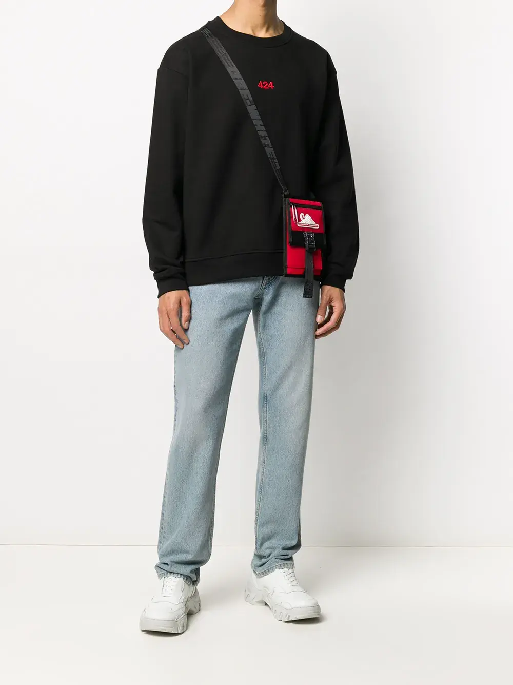 Круглый вырез, логотип спереди, длинные рукава, рукава с узкими манжетами и прямой подол.