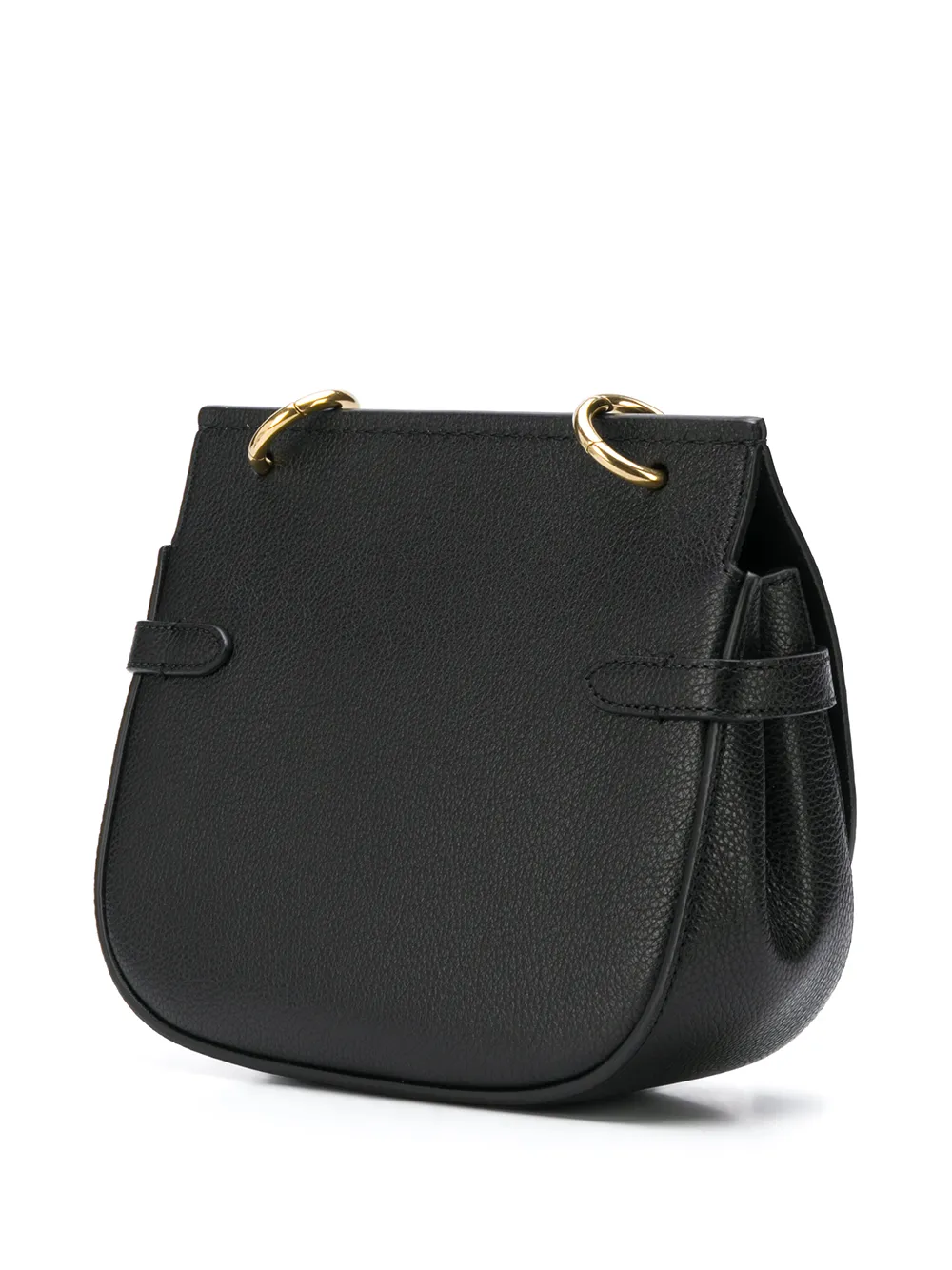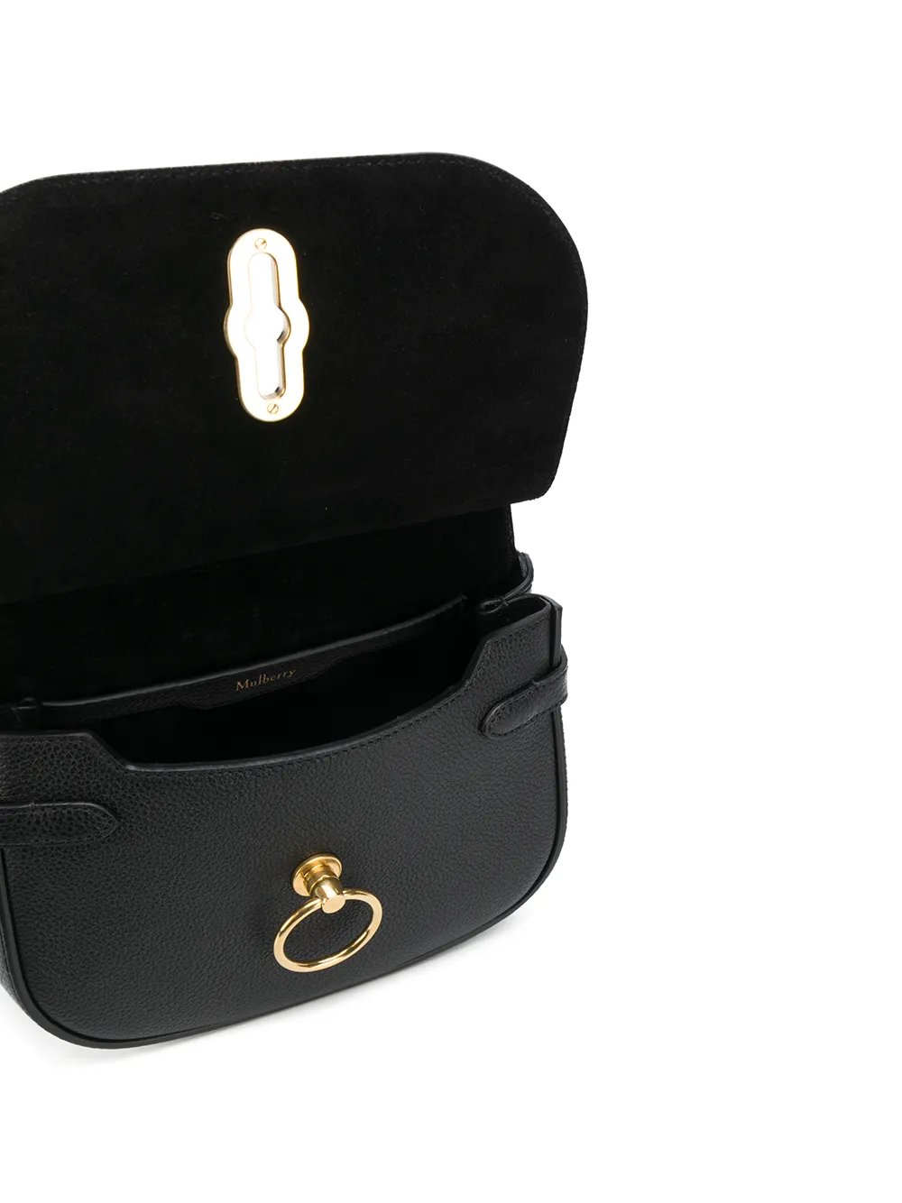 Маленькая сумка-сэтчел Amberley от Mulberry. Фактурная модель, печать с логотипом в центре спереди, золотистая фурнитура, откидной клапан с поворачивающейся застежкой, главный внутренний отдел, внутреннее клеймо с логотипом и регулируемый ремень на плечо. Цвет: черный.