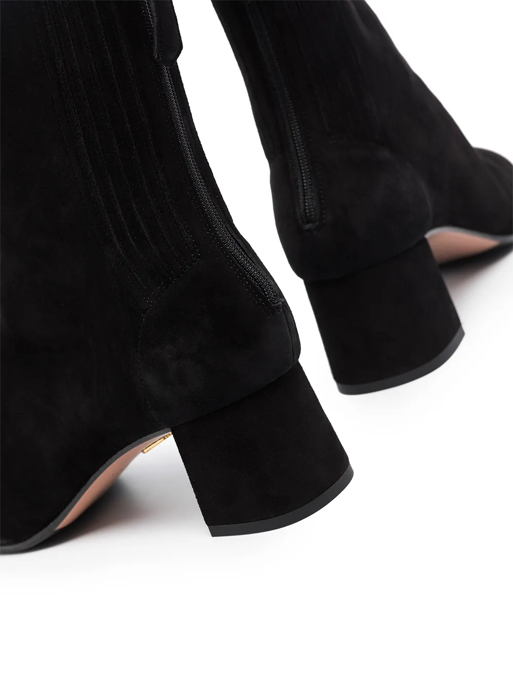 Миндалевидный носок, длина по щиколотку, застежка на молнии сзади и низкий наборный каблук. Цвет: черный.