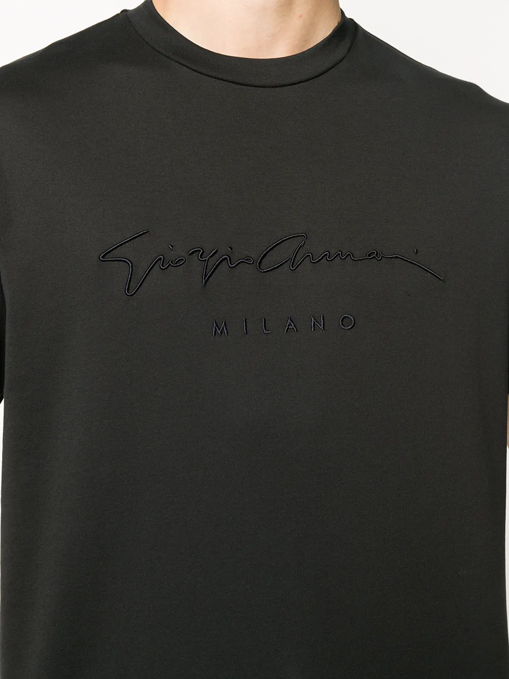 Футболка с вышитым логотипом GIORGIO ARMANI, черный