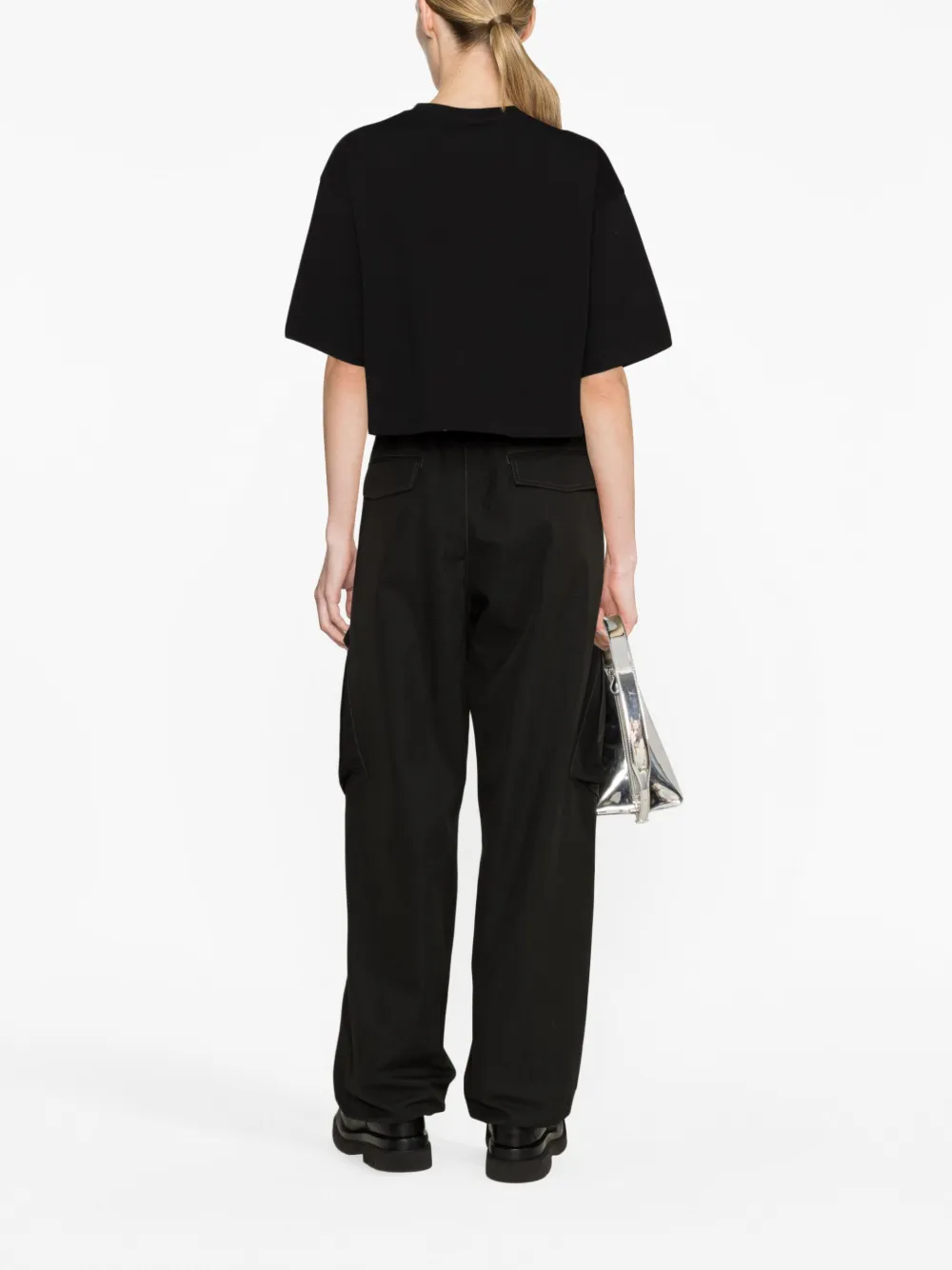 Черный, хлопок, логотип спереди, круглый вырез, короткие рукава, укороченная длина и прямой подол. Узнать больше о том, какие товары получают отметку «Ответственный выбор», можно из материала «Как мы оцениваем экологичность и этичность».