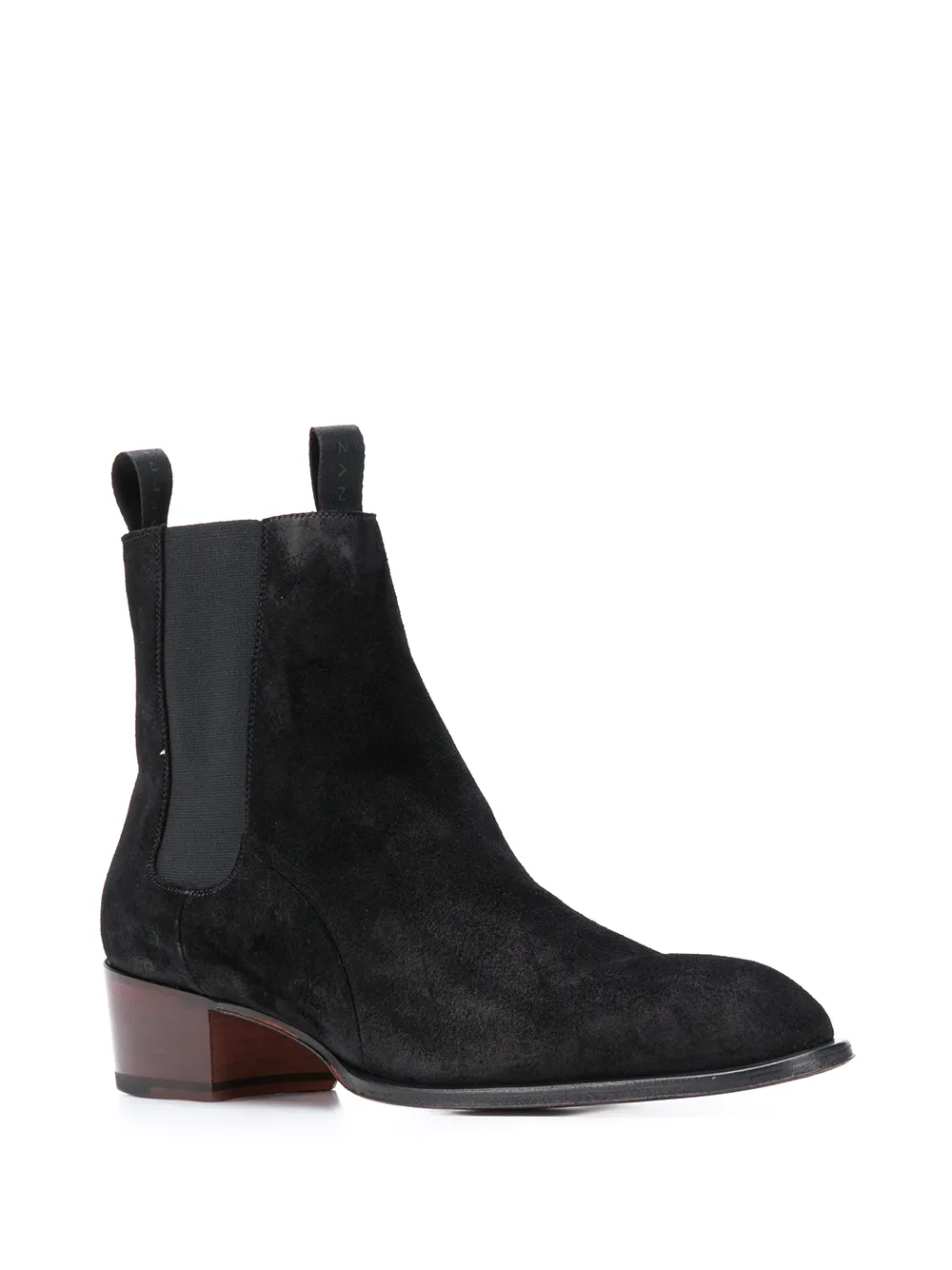 Закругленный носок, эластичные боковые панели, без застежки, двойная петля для подтягивания и каблук средней высоты.