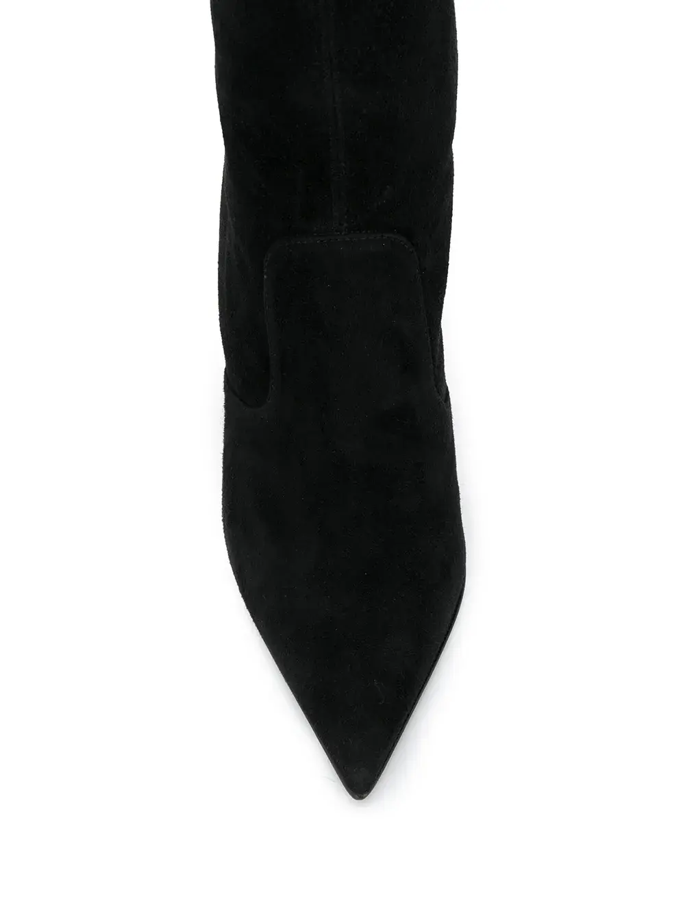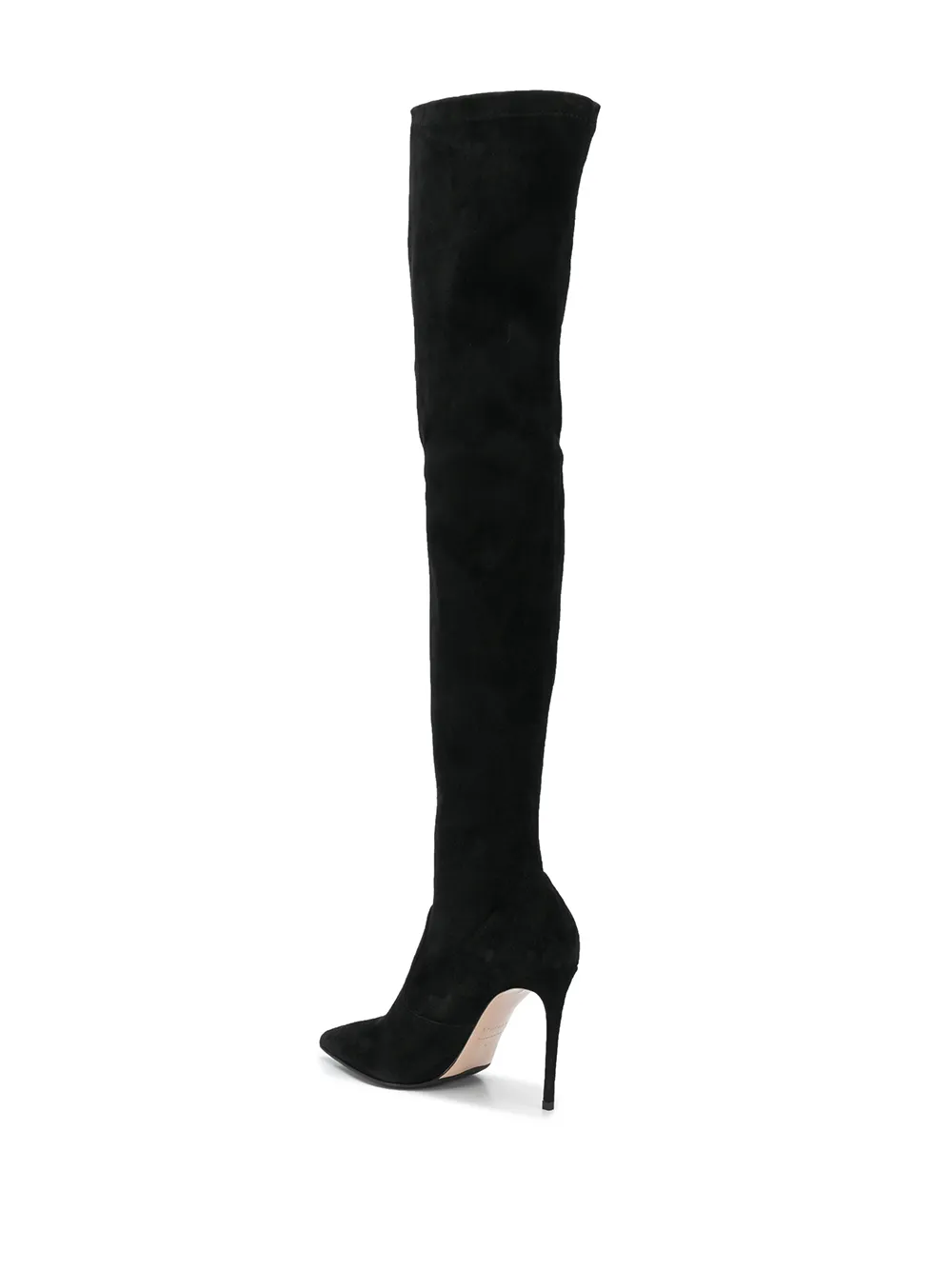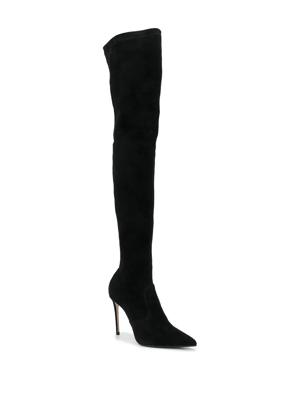 Заостренный носок, каблук-шпилька и длина до бедер. Цвет: черный.