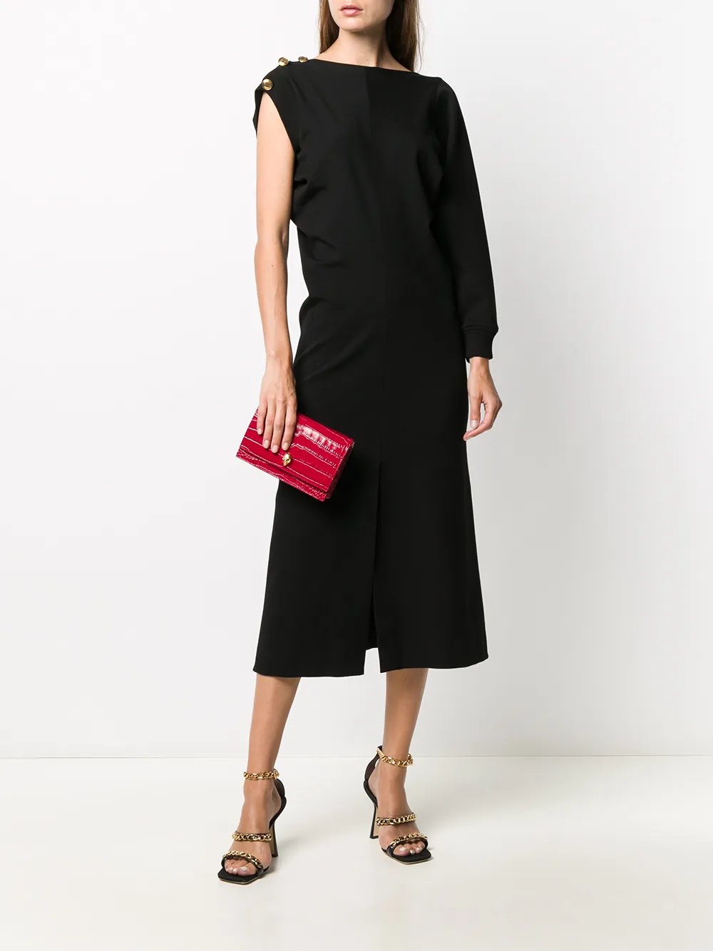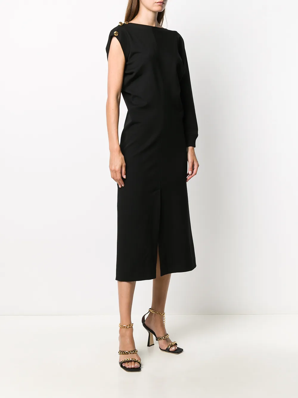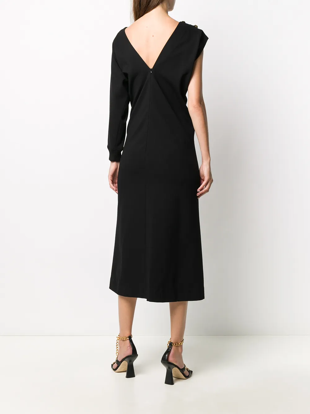 Платье в рубчик с одним рукавом Givenchy, черный