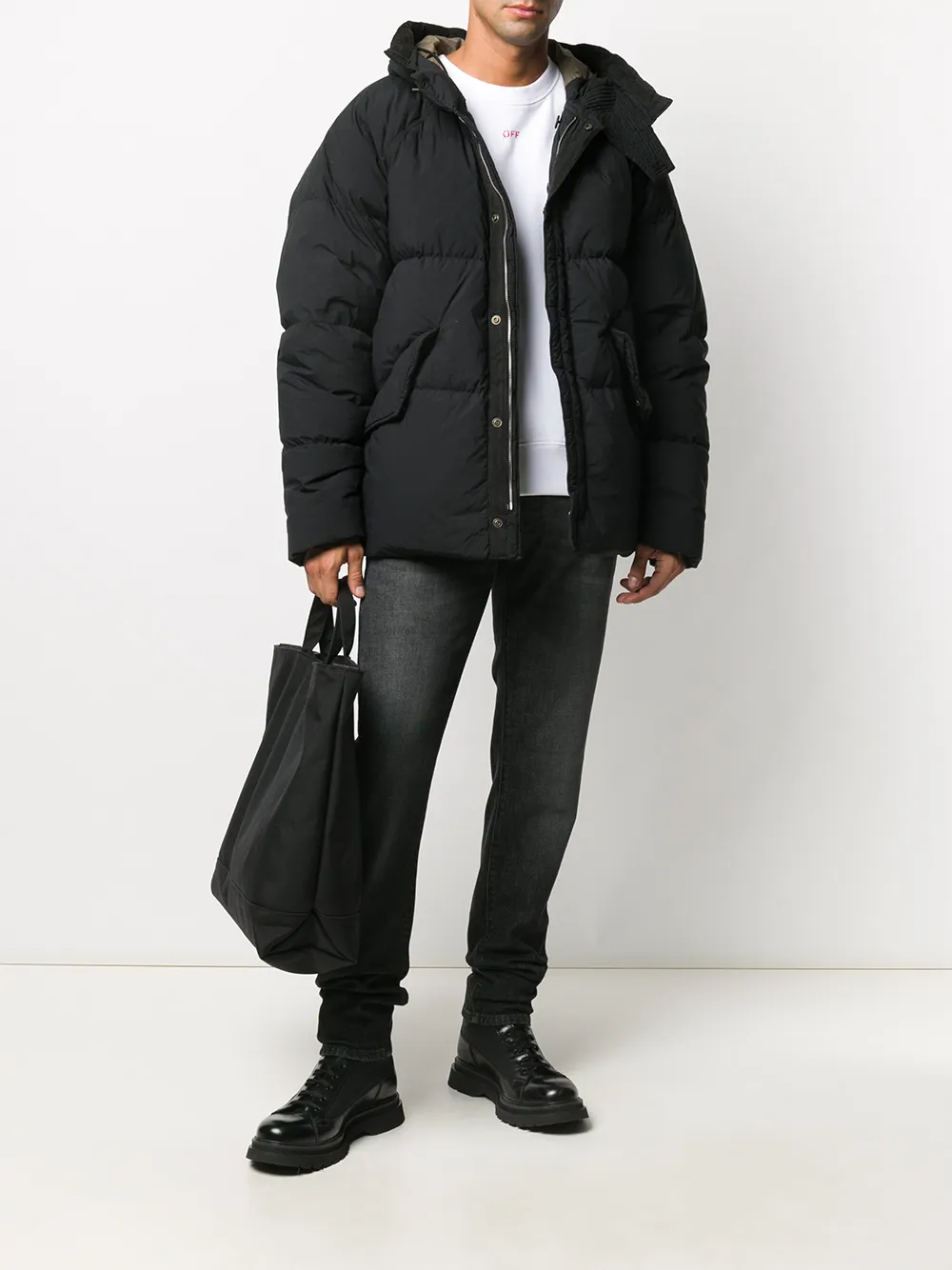 Пуховик с капюшоном TEN C, черный
