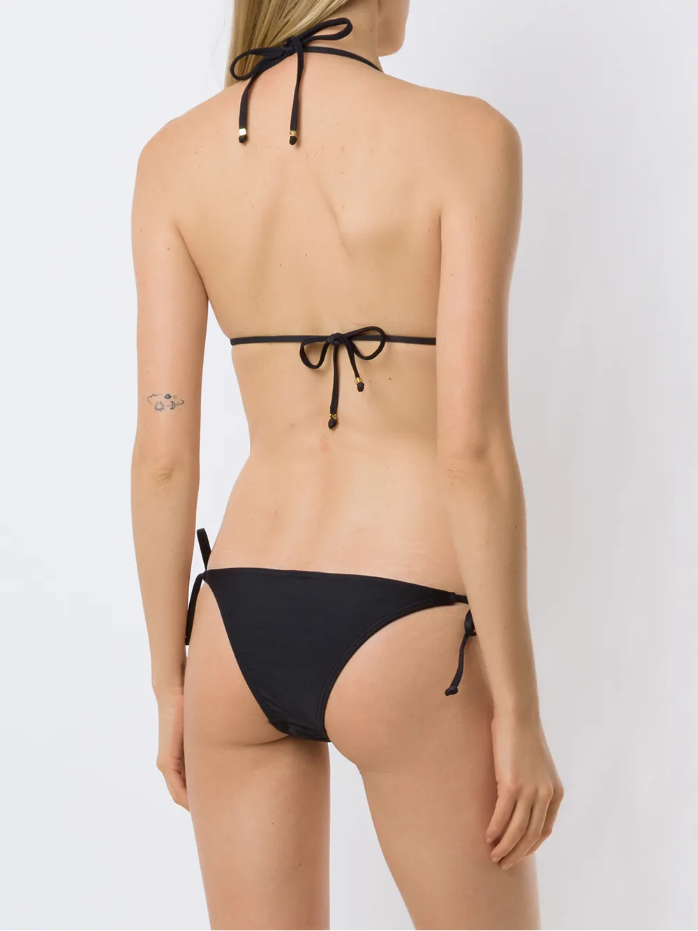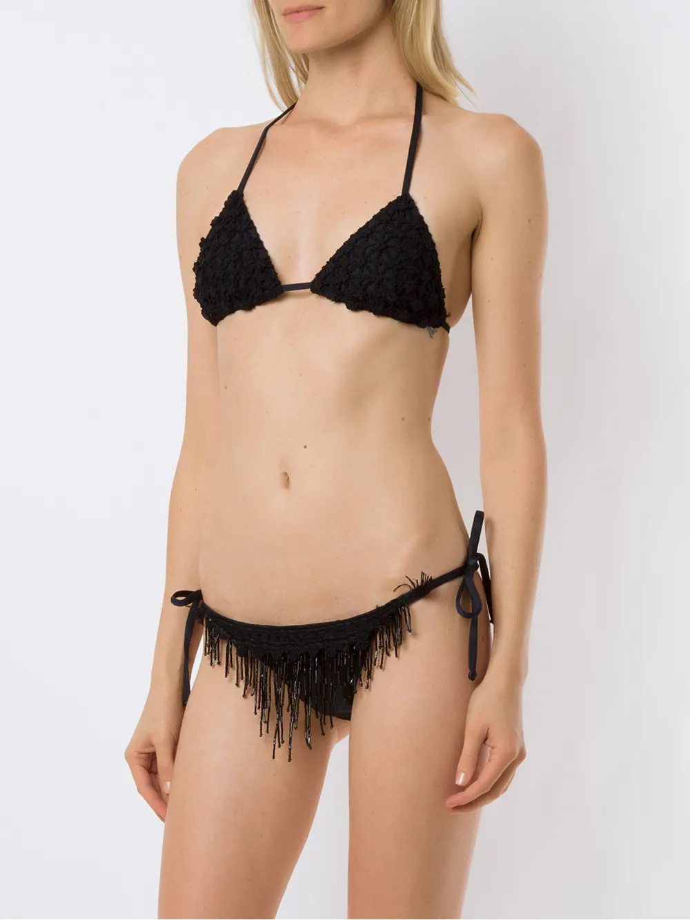 Бикини с вышивкой бисером от Amir Slama. треугольный верх, застежка на завязке сзади, завязки по бокам, украшение из бусин, оторочка с бахромой, эластичная модель, эластичная отделка и подкладка. Цвет: черный. Размер этой модели соответствует стандарту.