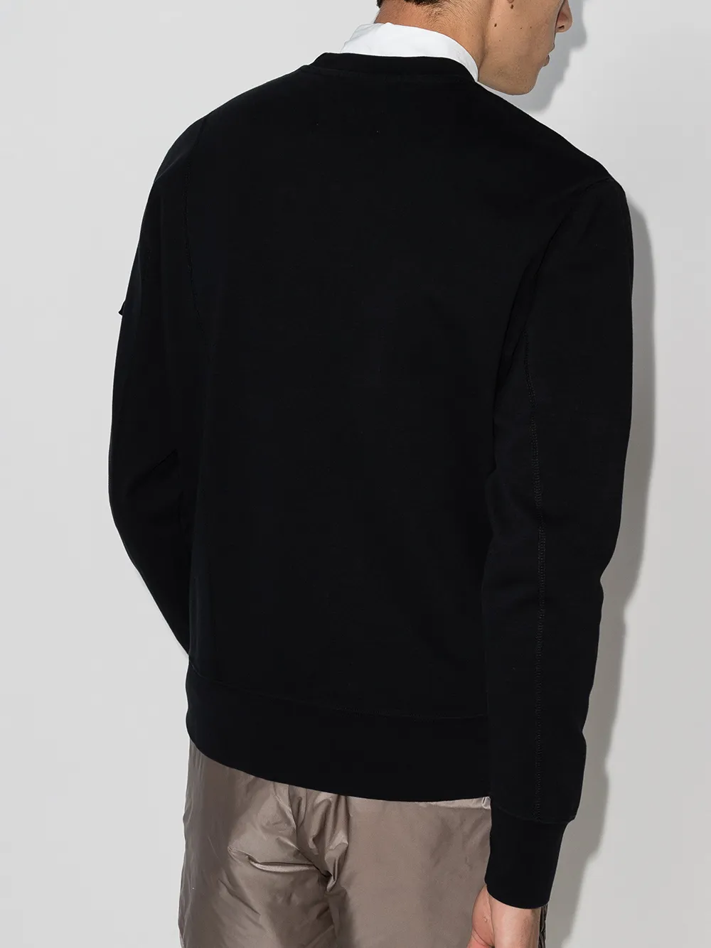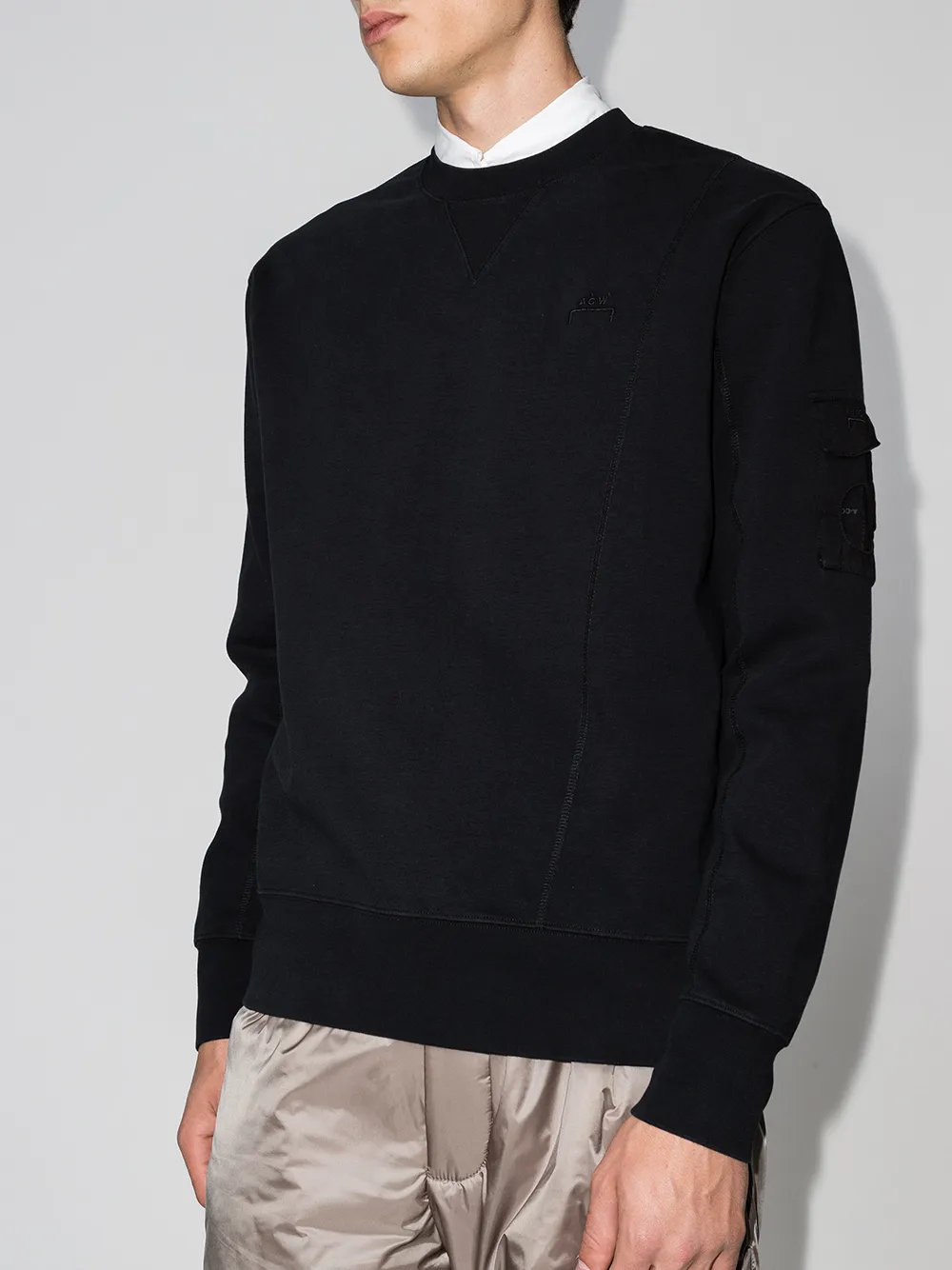 Вышитый логотип на груди, круглый вырез, длинные рукава, карман с клапаном на рукаве и прямой подол. Цвет: черный.