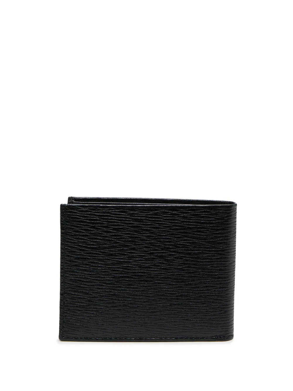 Зернистая текстура, золотистый металлический логотип, внутренние отделения для карт и тисненый логотип внутри. Цвет: черный.