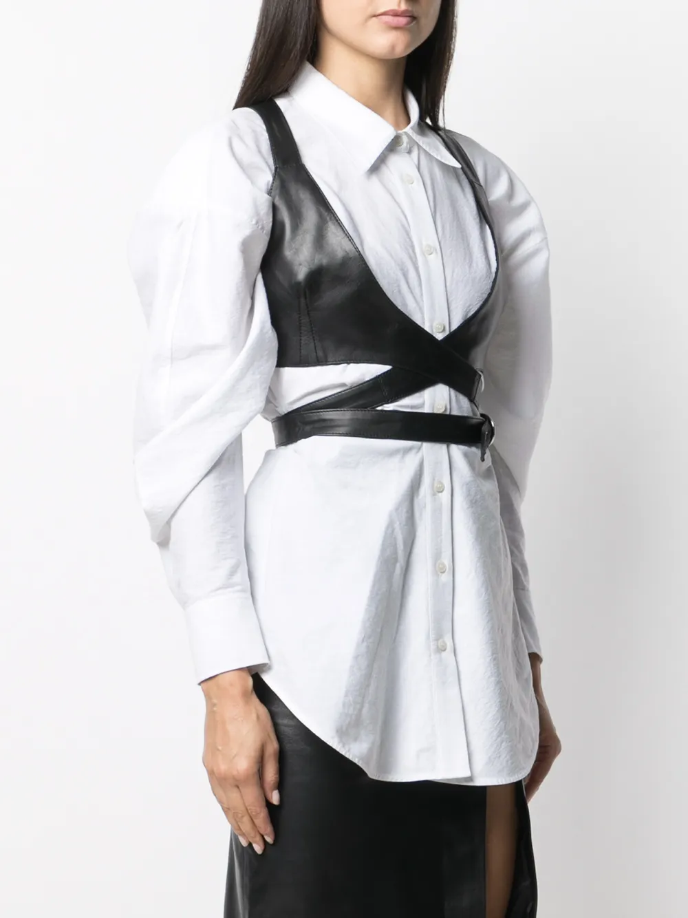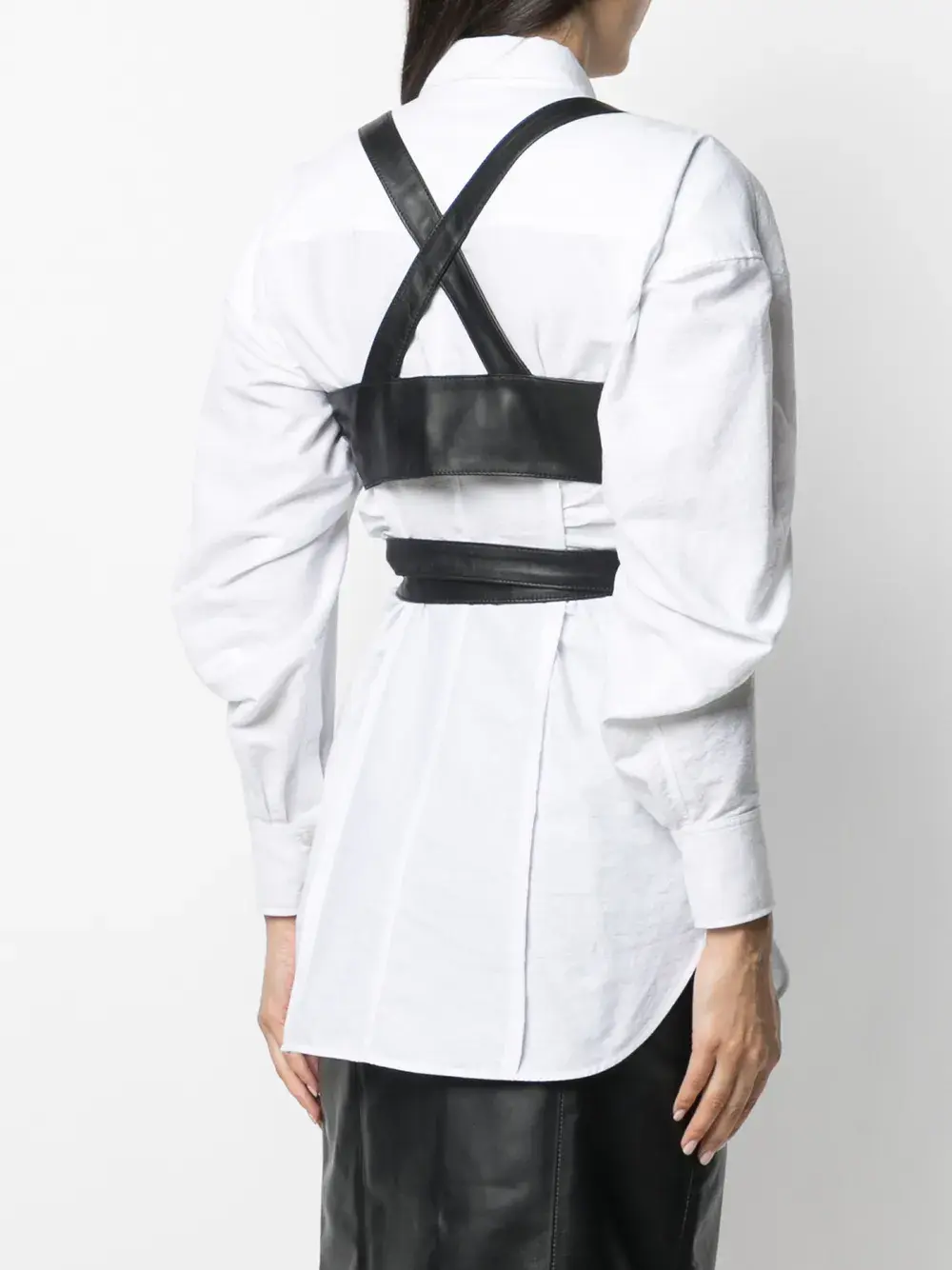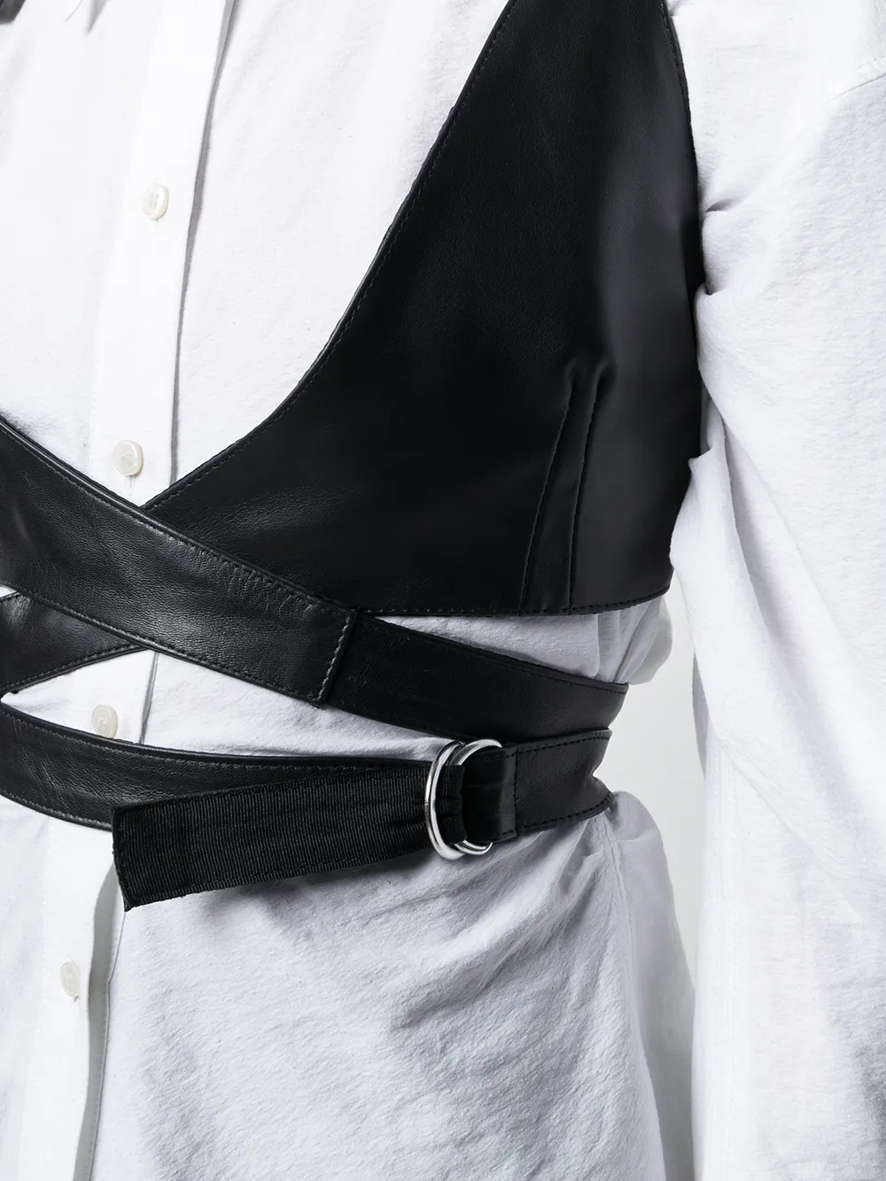 Глубокий V-образный вырез, перекрестные ремешки, без рукавов, тональная строчка, D-образная фурнитура и серебристая фурнитура. Цвет: черный.
