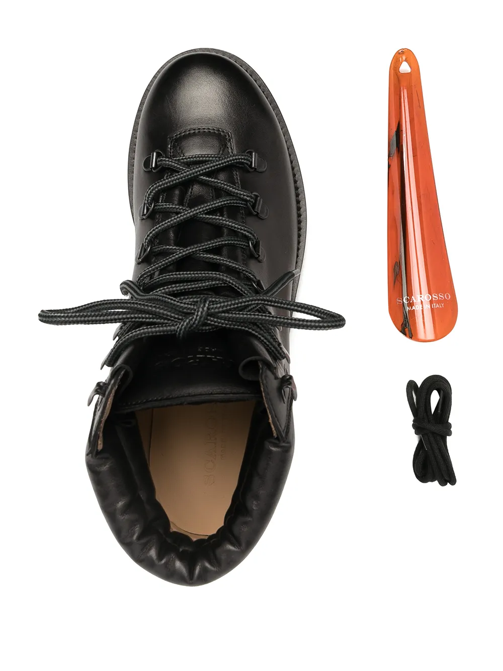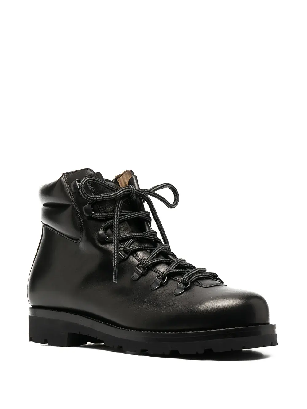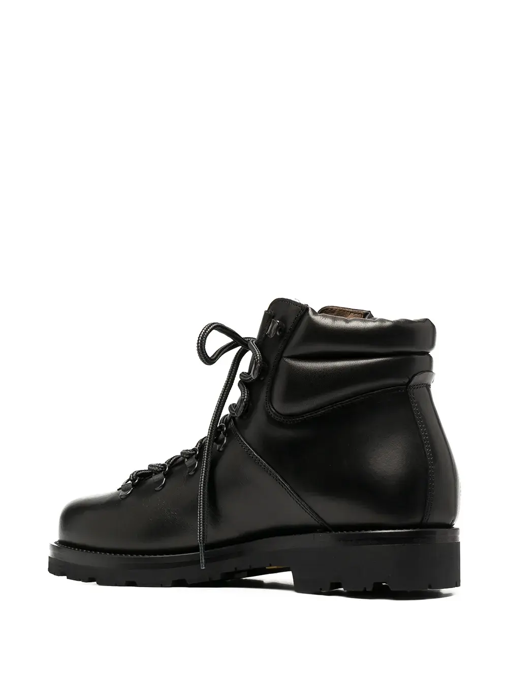 Уплотненная щиколотка, шнуровка спереди, закругленный носок и массивная резиновая подошва. Цвет: черный.