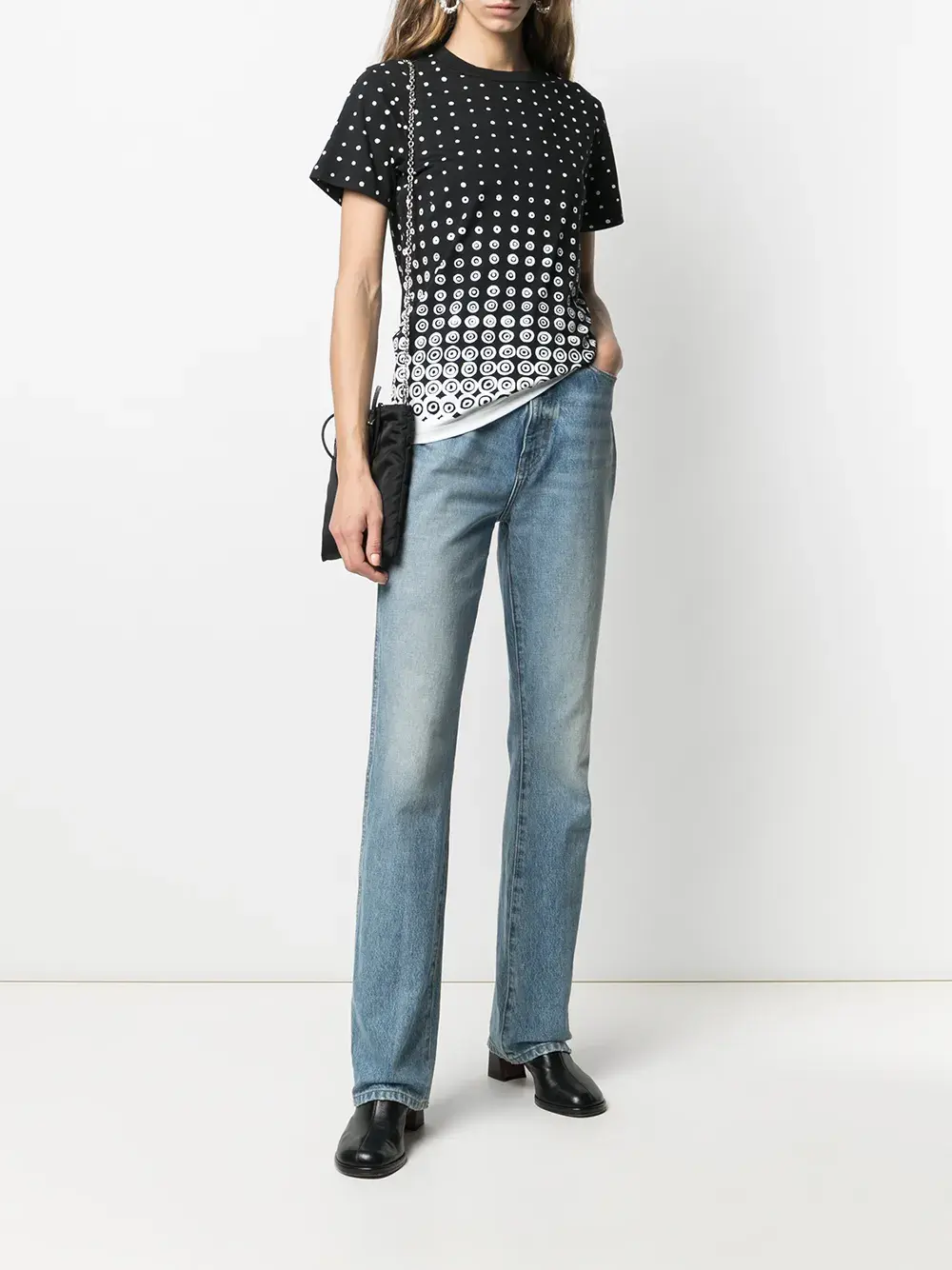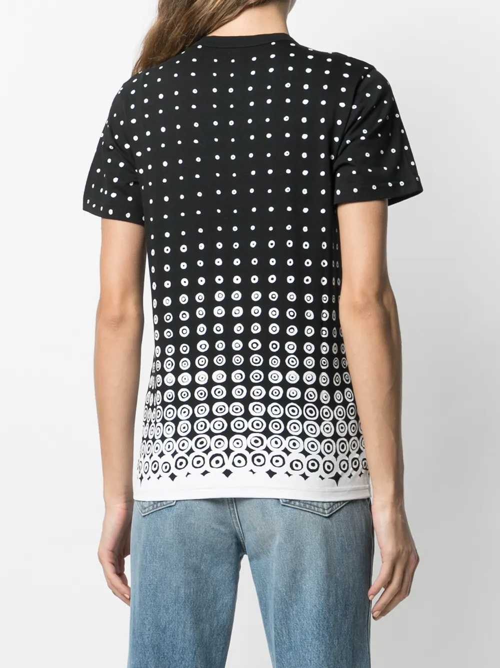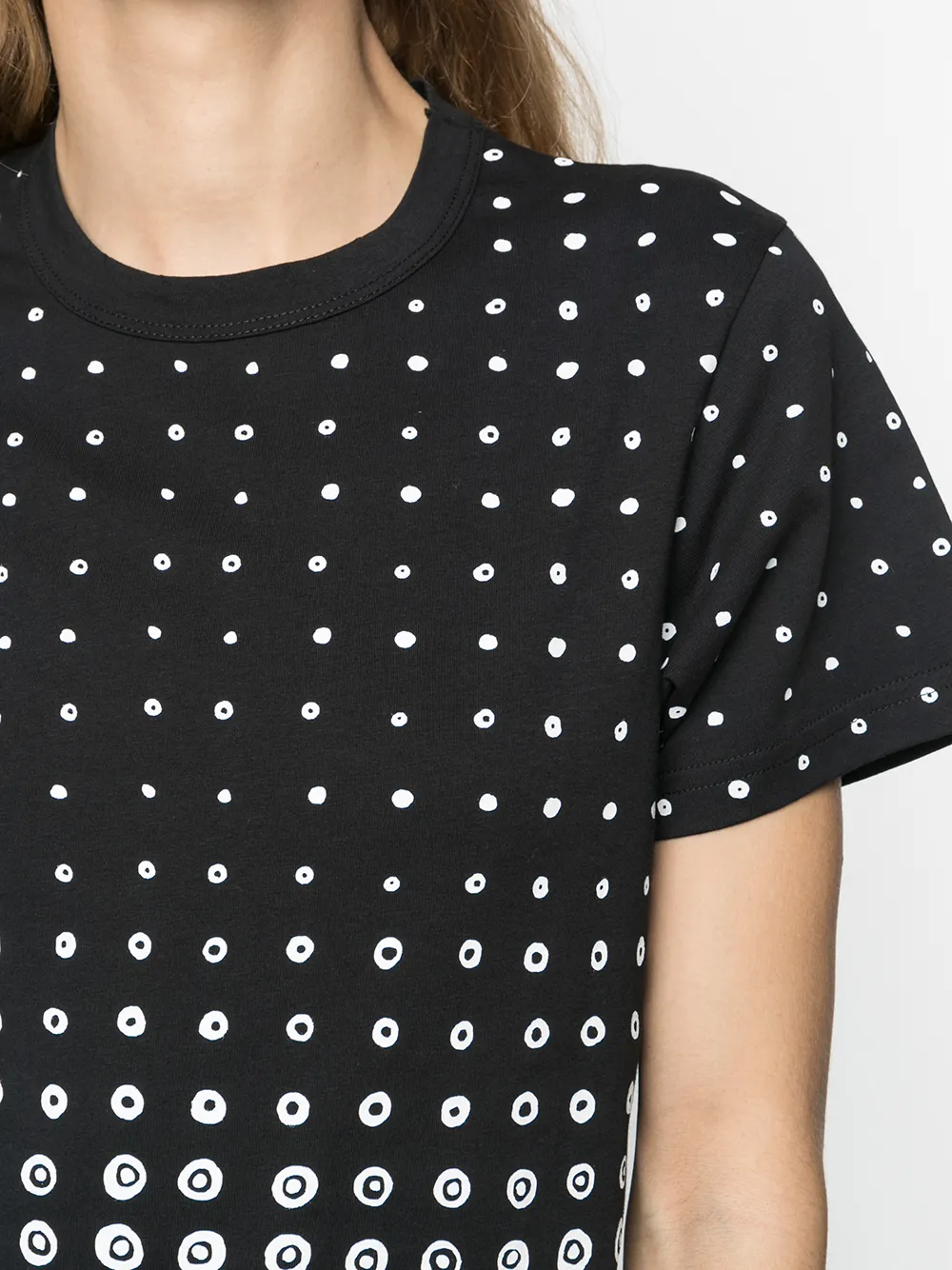 Ткань джерси, принт в горох, круглый вырез и короткие рукава. Цвет: черный.