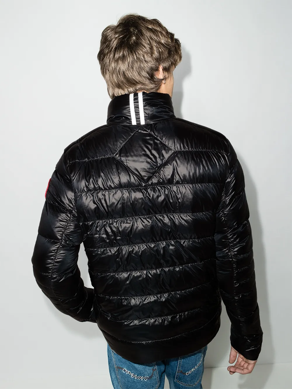 Стеганая модель, застежка на молнии спереди, высокий воротник, нашивка с логотипом на рукаве, два кармана на молнии по бокам и классический капюшон. Цвет: черный. .
