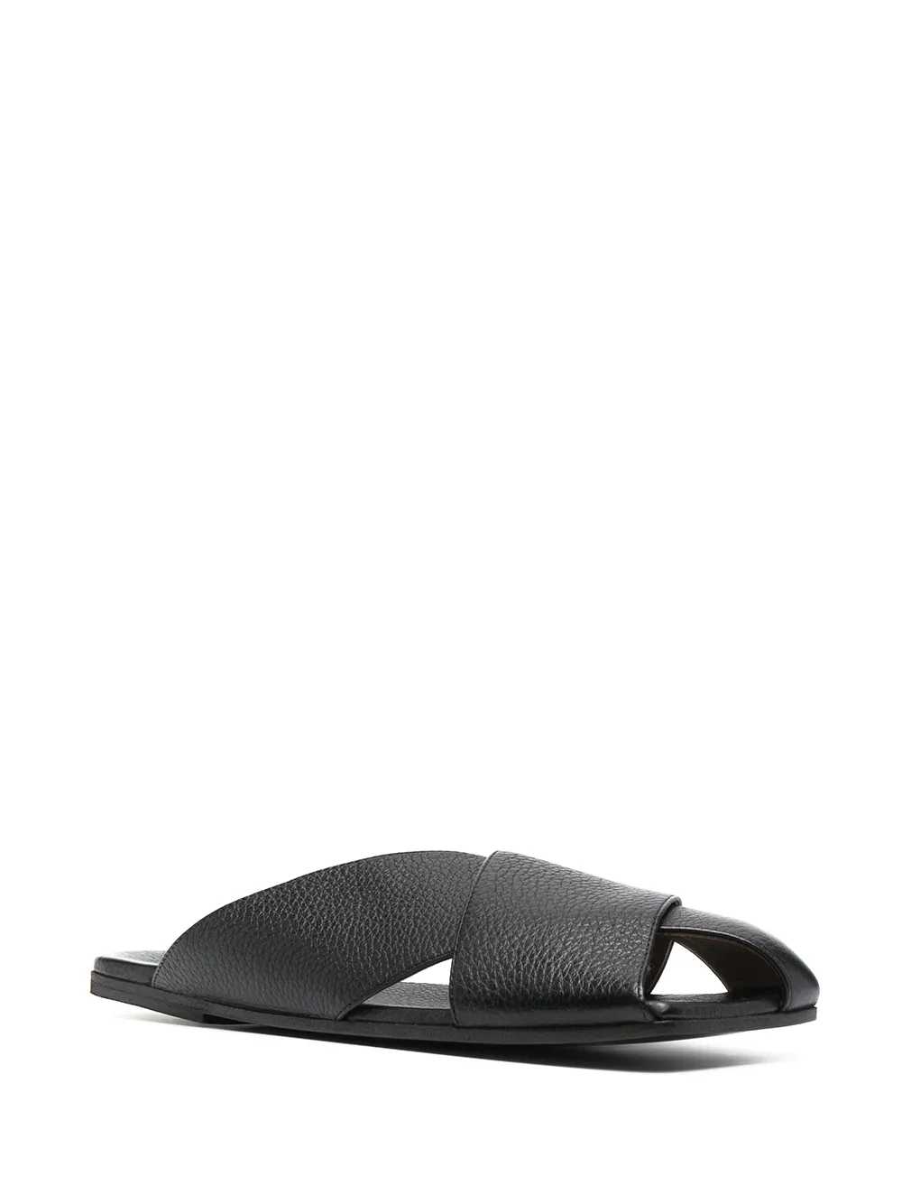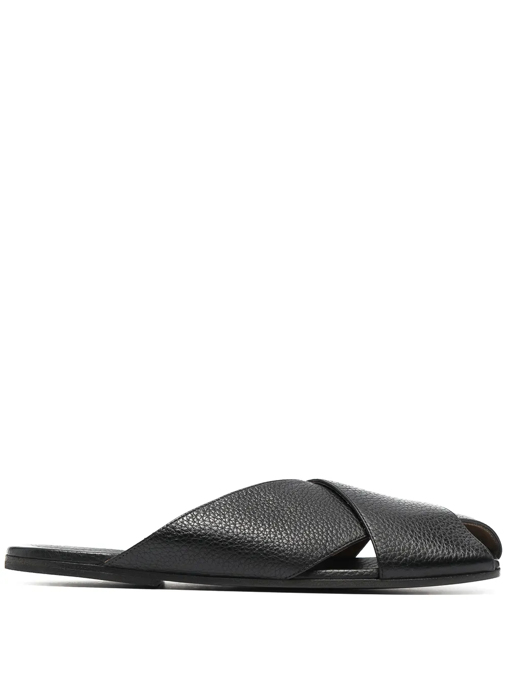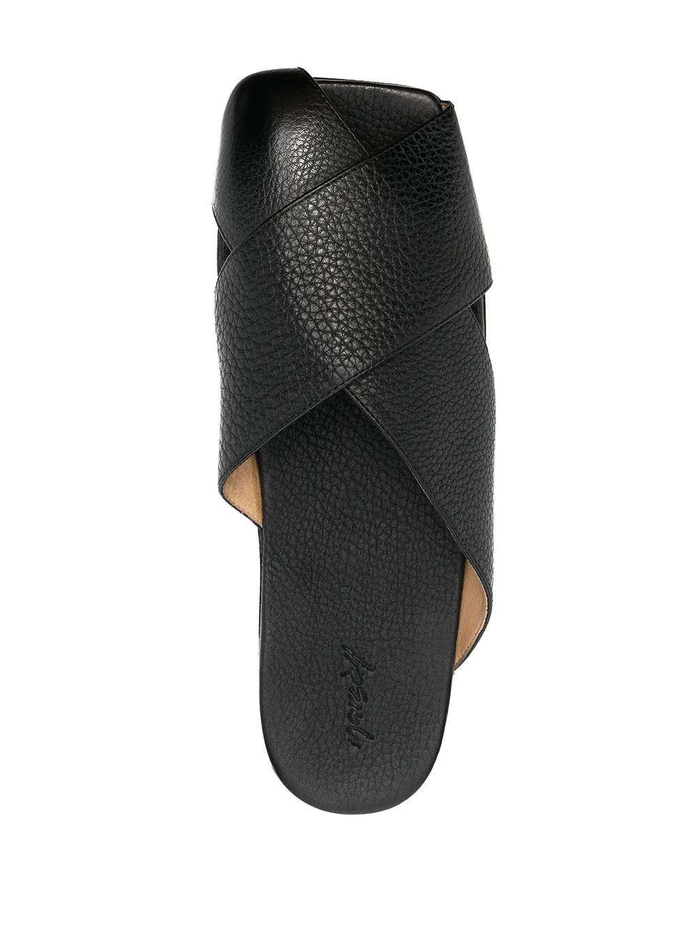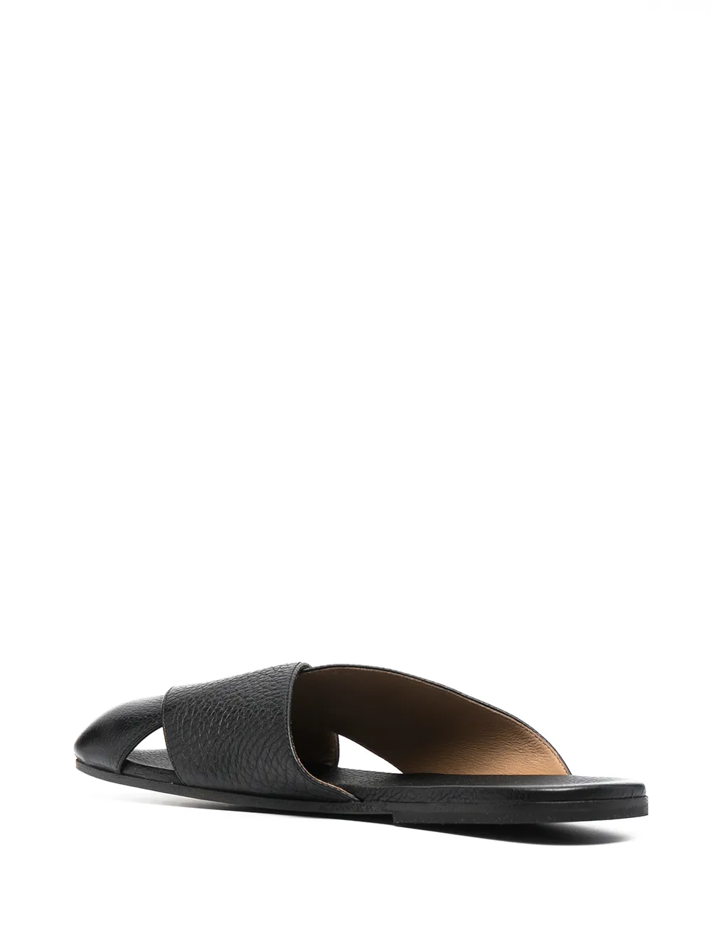 Черный кожа зернистая текстура квадратный носок перекрестные ремешки открытая спина плоская подошва