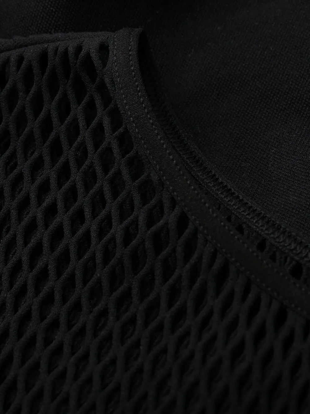 Сетчатые вставки, перфорация, круглый вырез и длинные рукава. Цвет: черный.