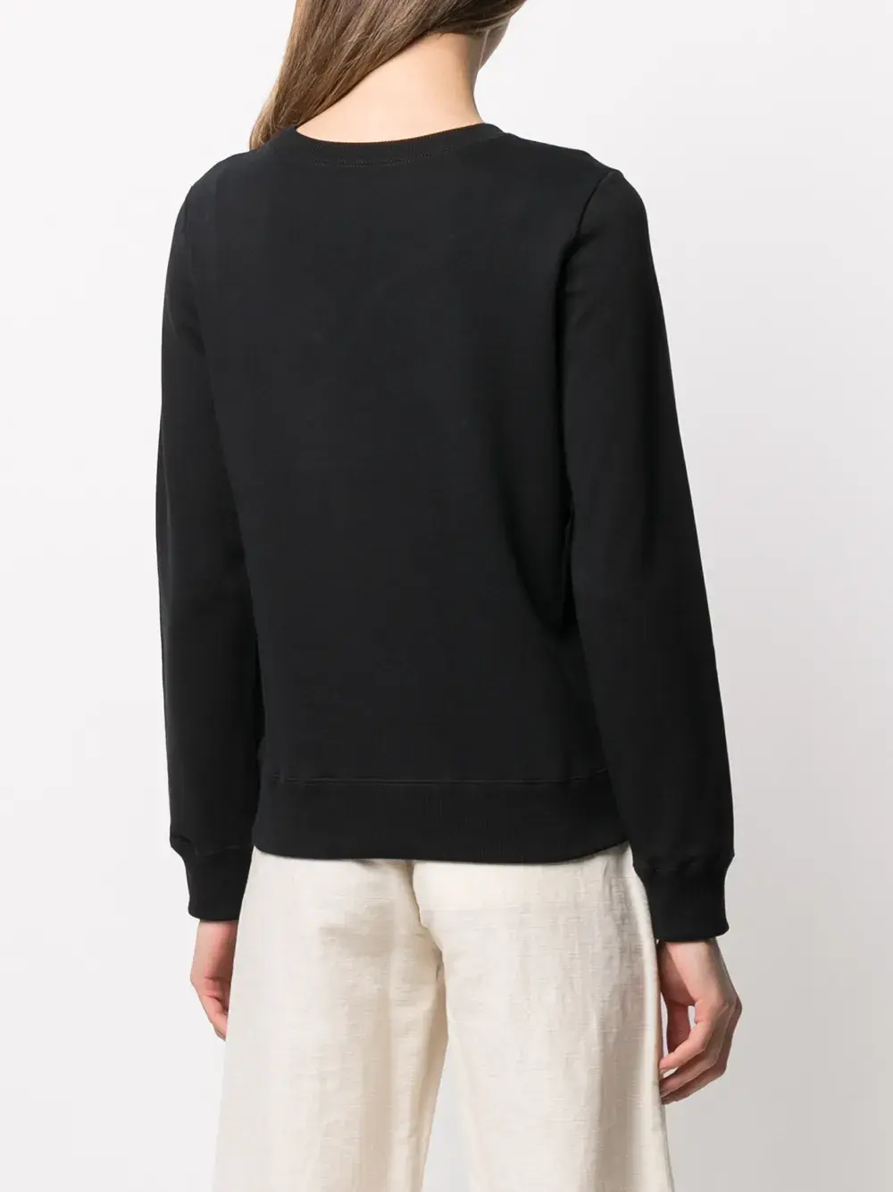 Принт с логотипом на груди, круглый вырез, длинные рукава, манжеты в рубчик и подол в рубчик. Цвет: черный.