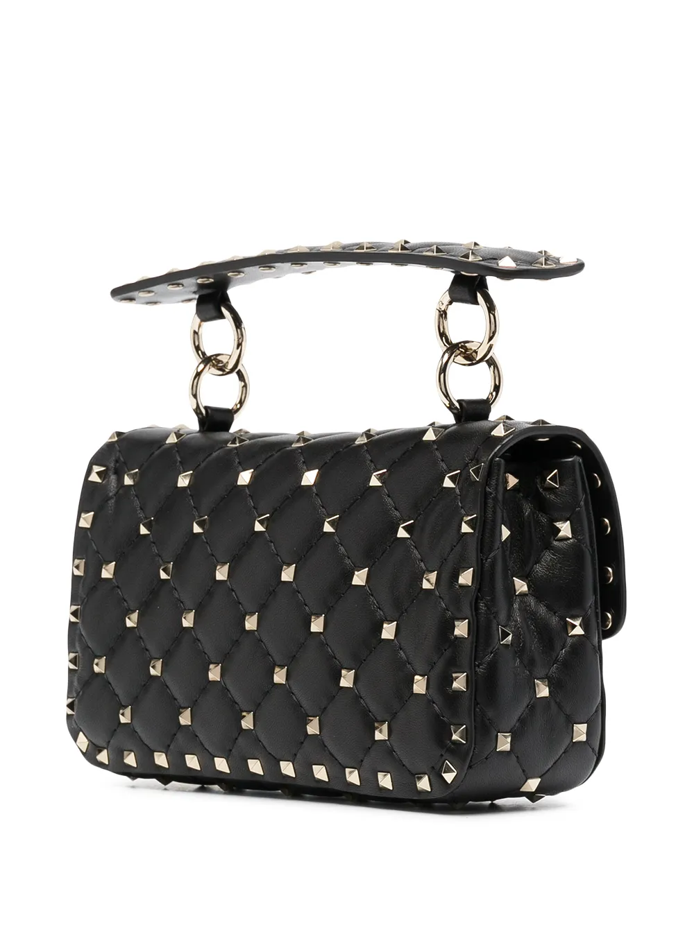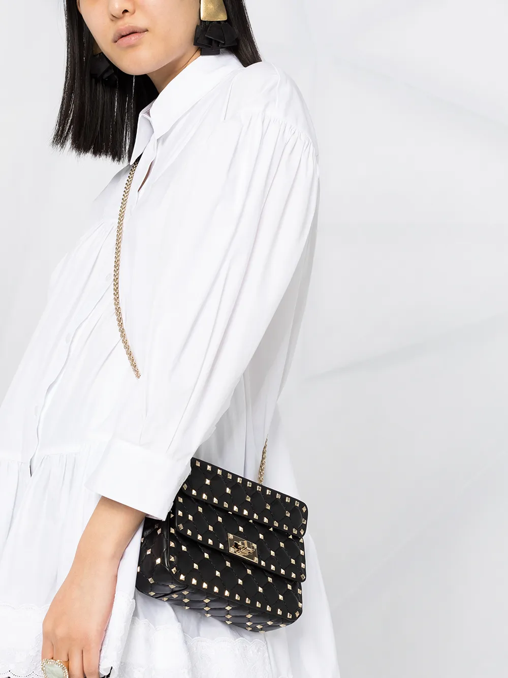 Стеганый материал, заклепки Rockstud, застежка с поворачивающимся замком, ремешок-цепочка на плечо, ручка с плоским верхом и внутреннее отделение для карт. Цвет: черный.
