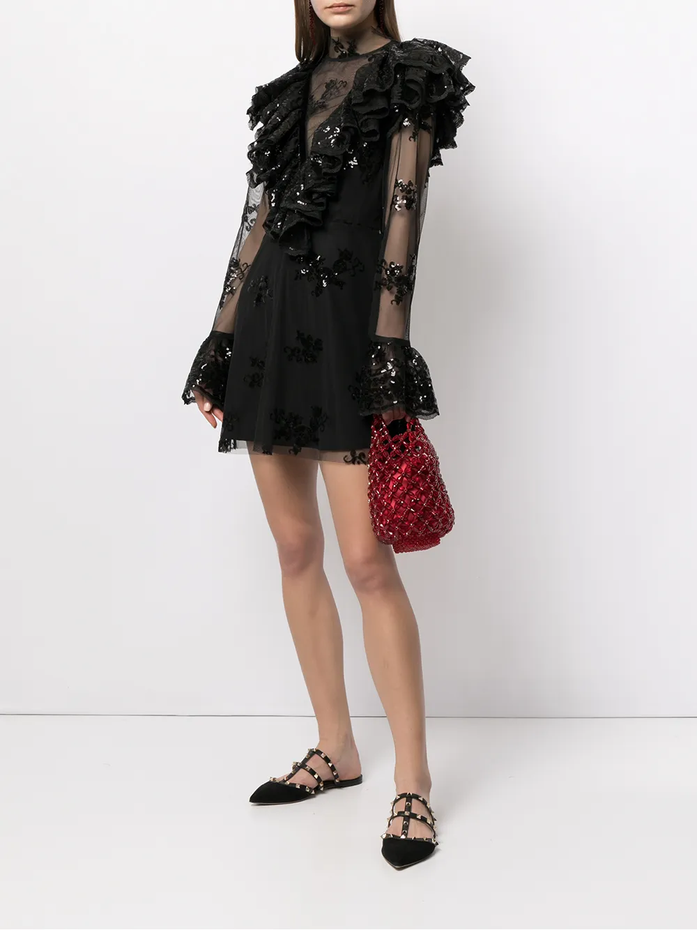 Платье мини с прозрачными вставками и пайетками Macgraw, черный 74 544₽
