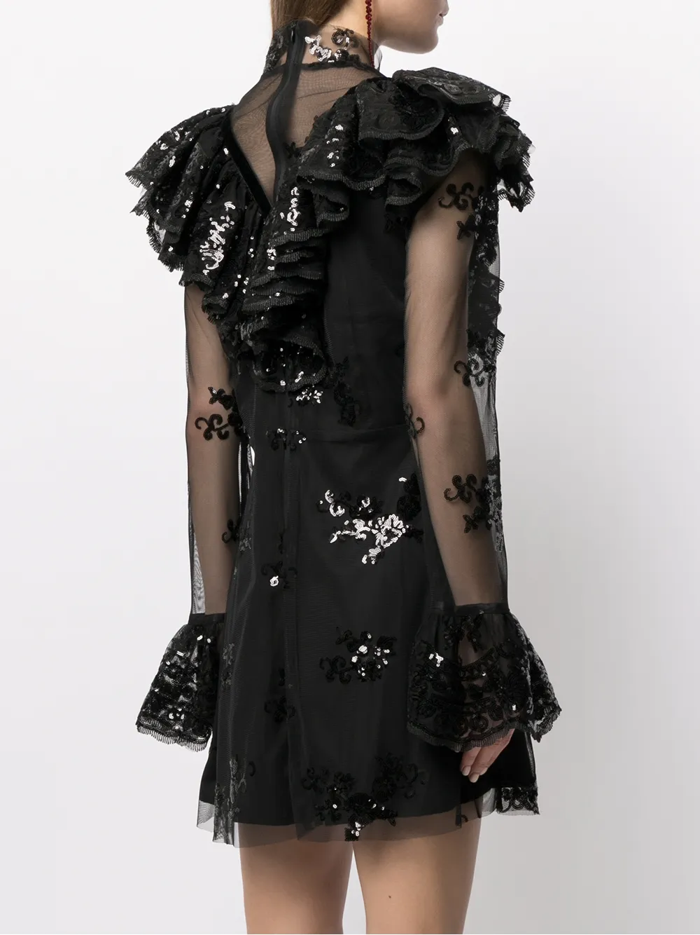 Платье мини с прозрачными вставками и пайетками Macgraw, черный