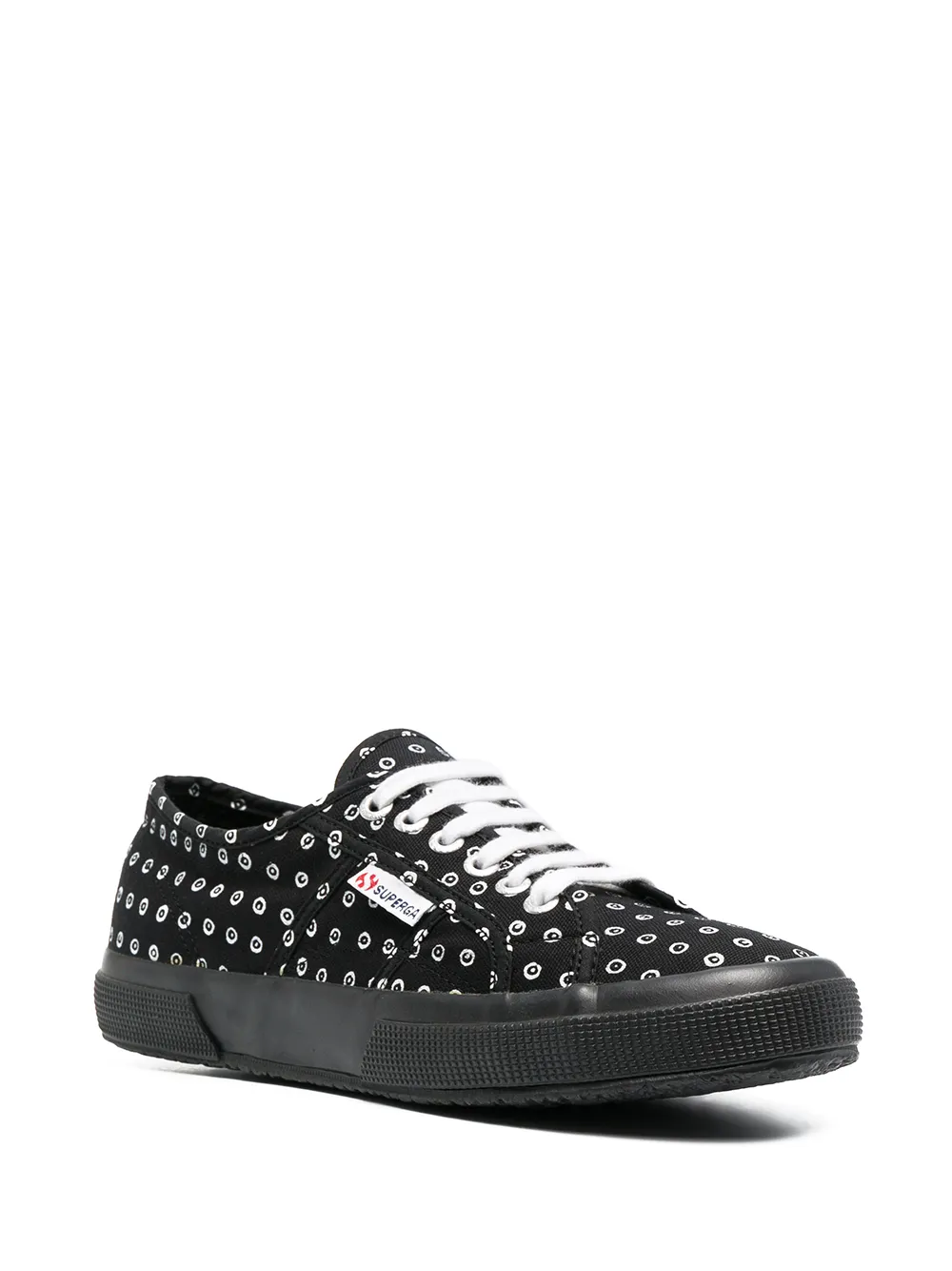 Сплошной принт с логотипом, закругленный носок, шнуровка спереди, стелька с логотипом и плоская резиновая подошва.