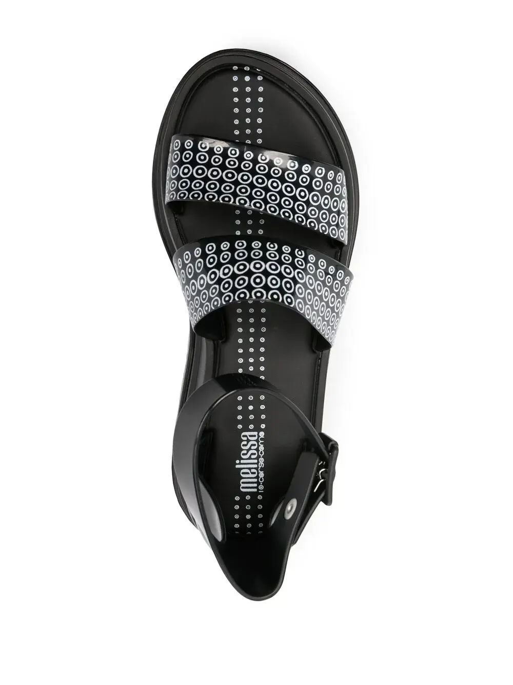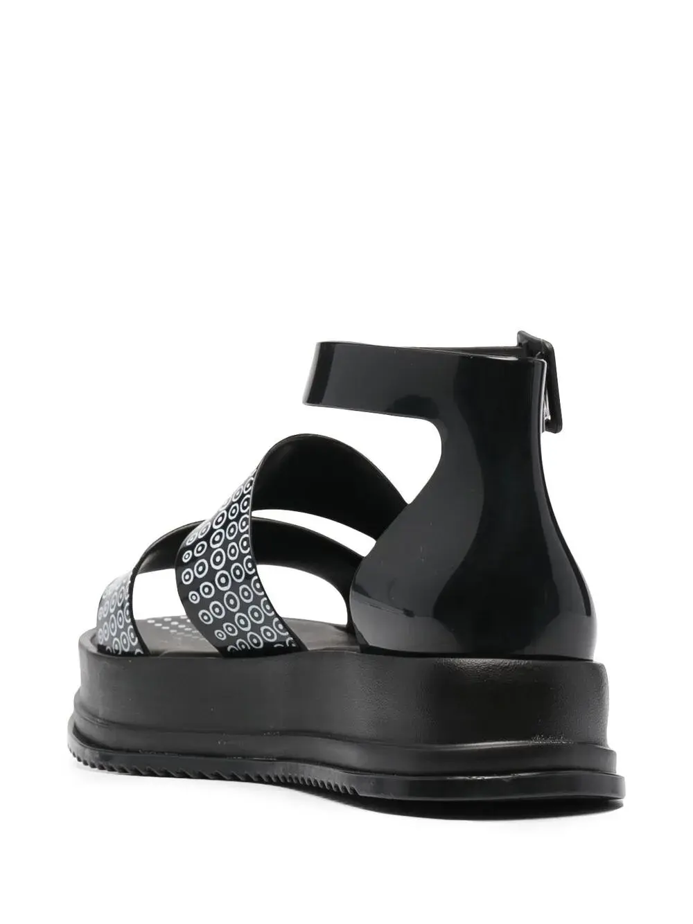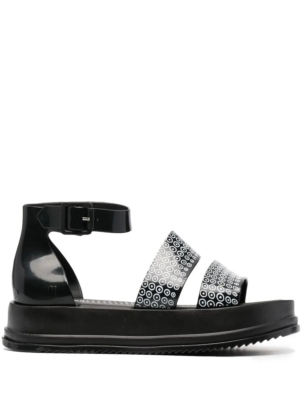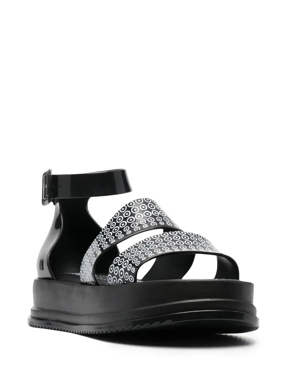 Монограмма, открытый носок, стелька с логотипом, ремешок на щиколотке с пряжкой и массивная резиновая подошва. Цвет: черный.
