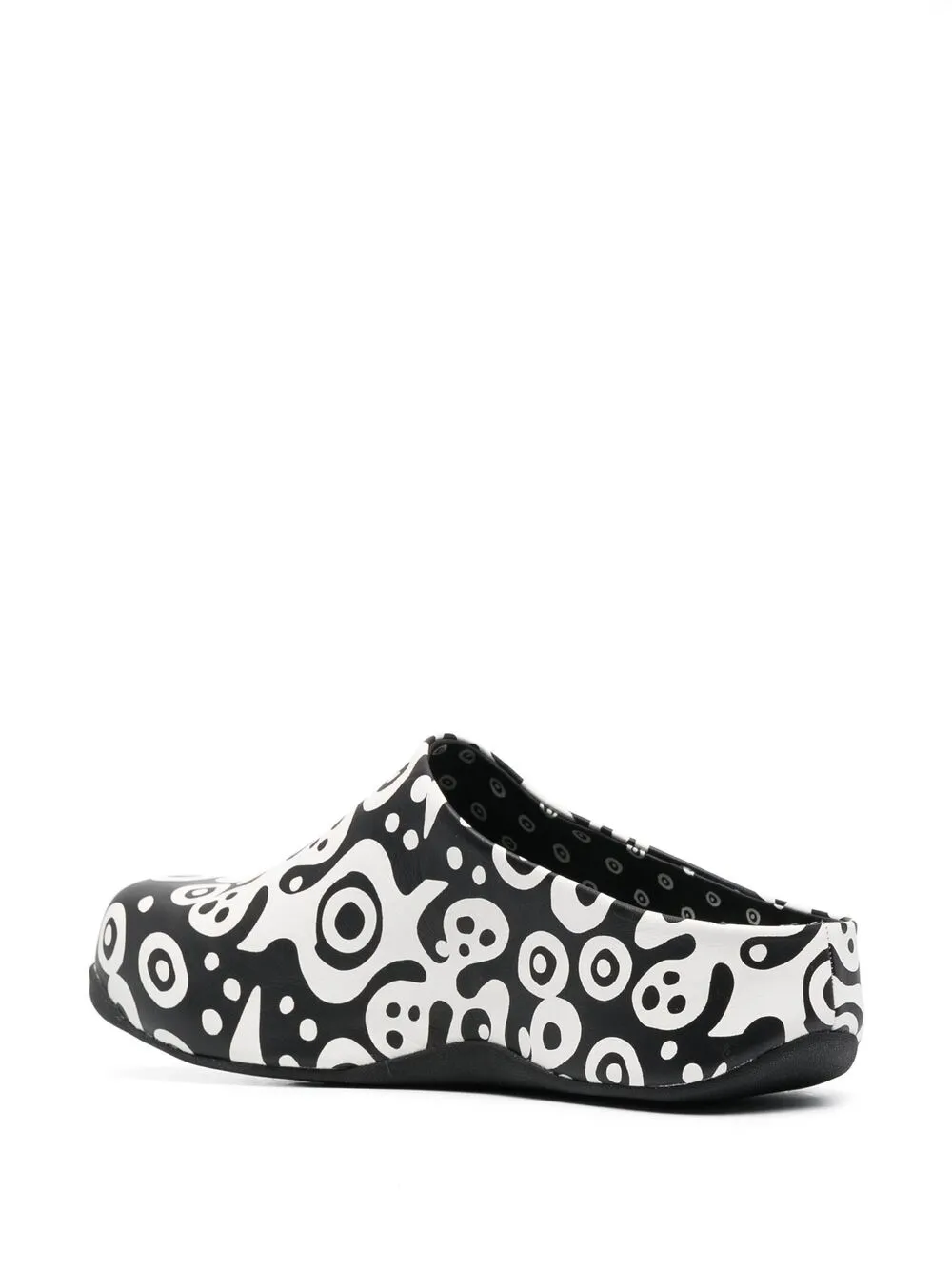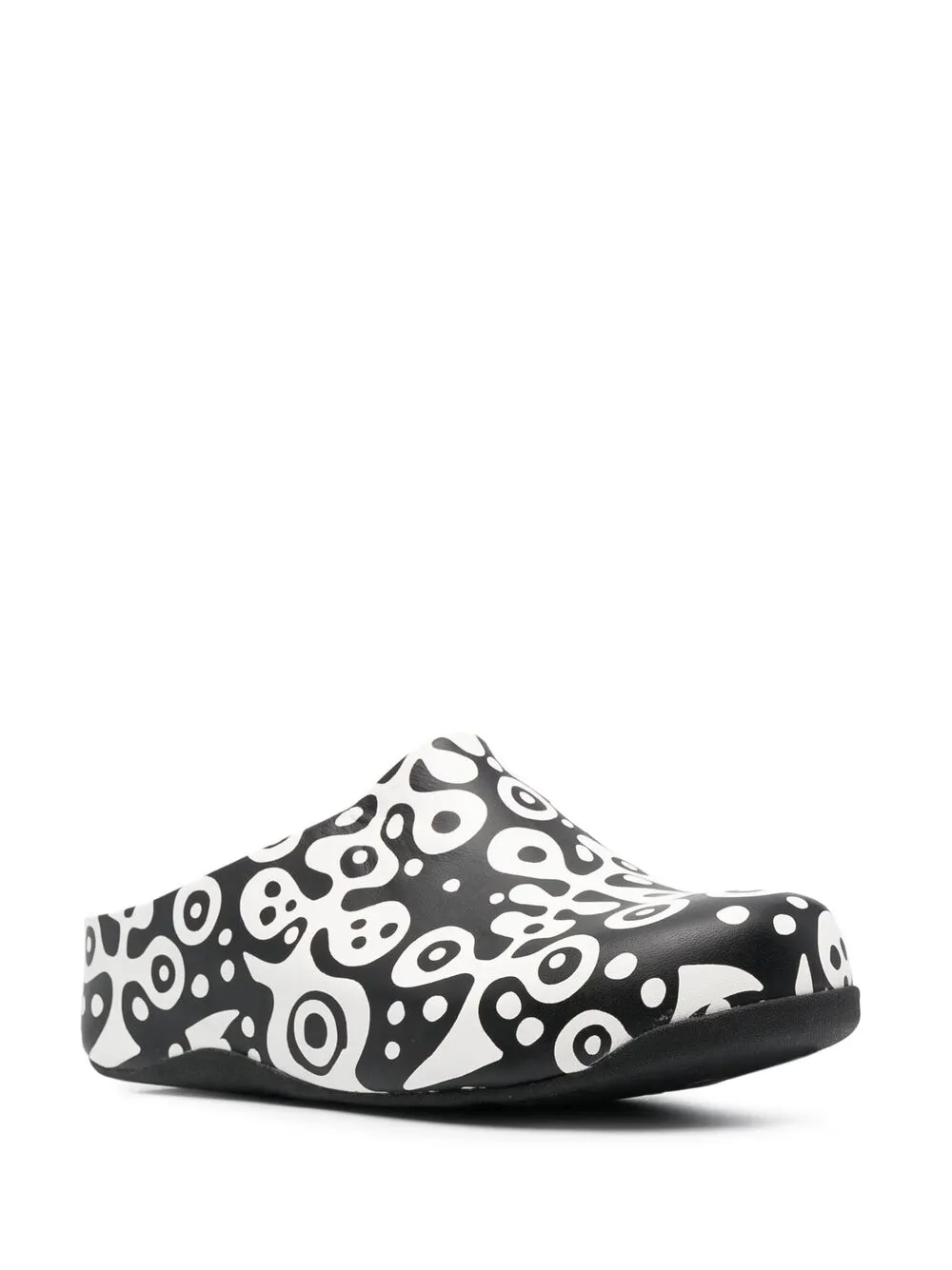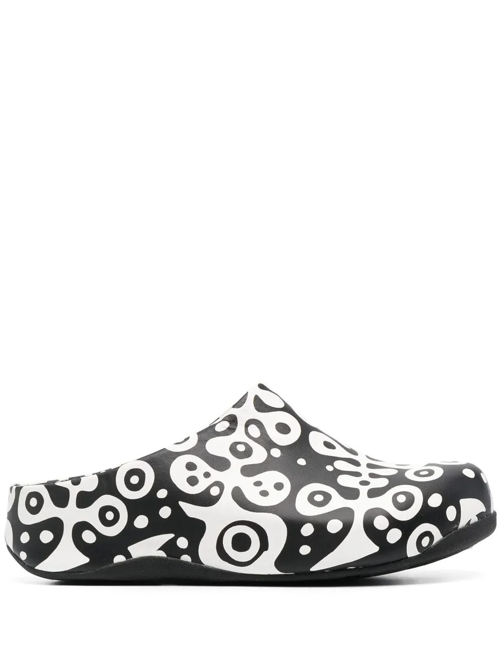 Абстрактный принт, закругленный носок, модель без застежки, стелька с логотипом и резиновая подошва.