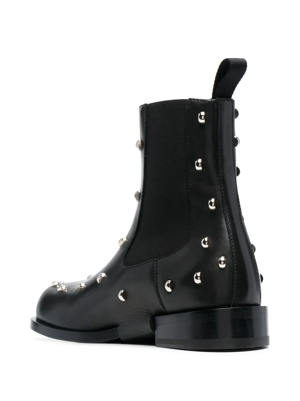 Заклепки, петля для подтягивания сзади, эластичные боковые панели, закругленный носок и низкий блочный каблук. Цвет: черный.