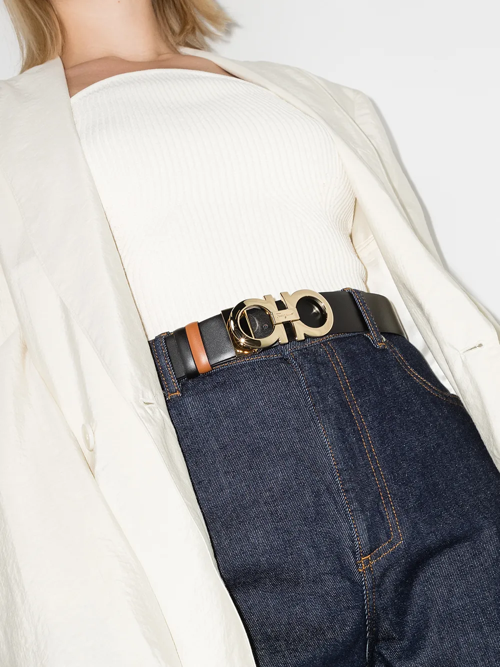 Двусторонний ремень с декором Gancini Ferragamo, черный