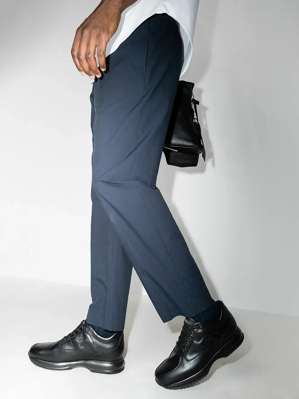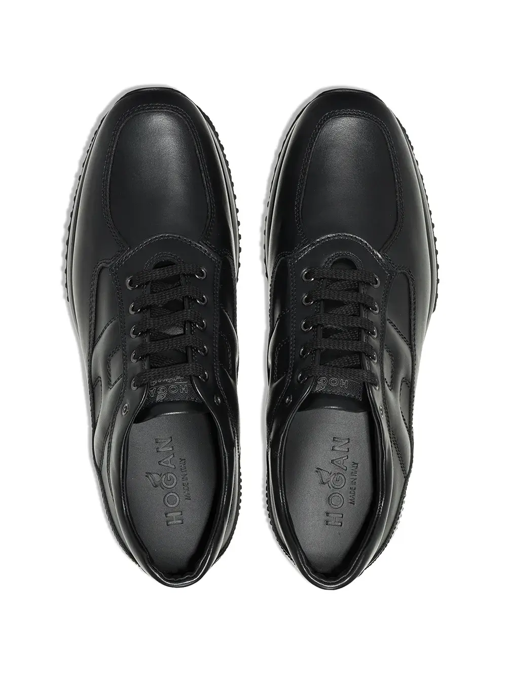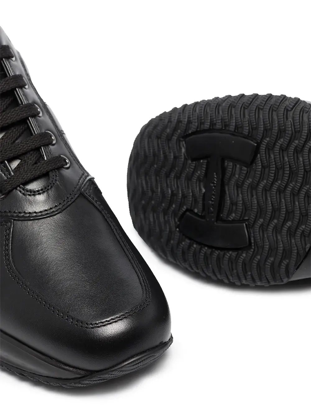 Шнуровка спереди, закругленный носок, тисненый логотип сбоку, нашивка с логотипом на язычке, кожаная стелька с логотипом и массивная резиновая подошва. Цвет: черный.