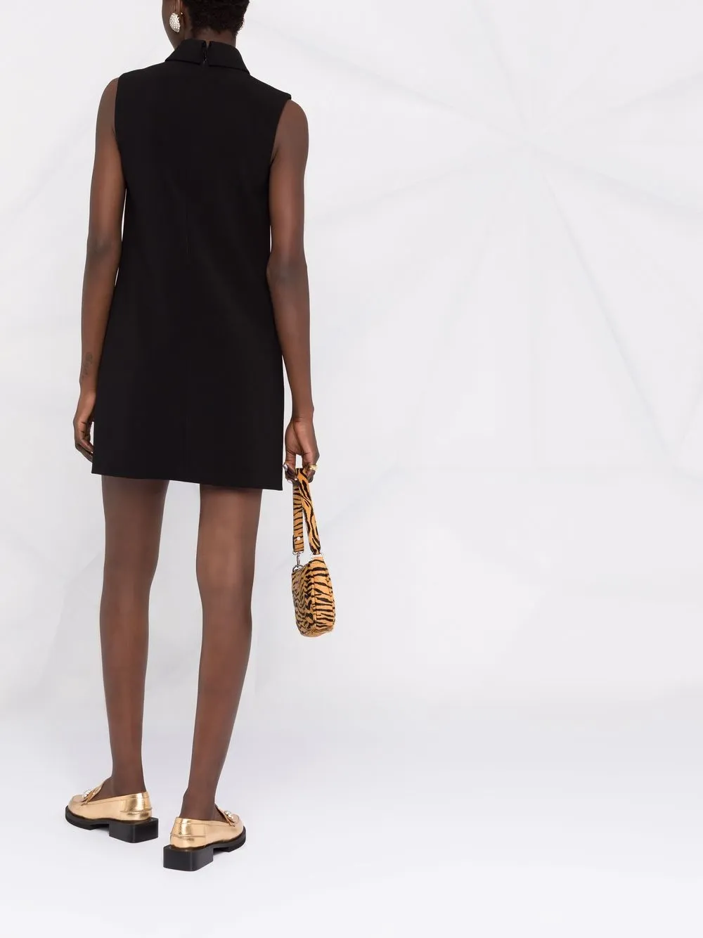 Декоративные пуговицы, классический воротник, застежка на молнии сзади, без рукавов и имитация кармана. Цвет: черный.