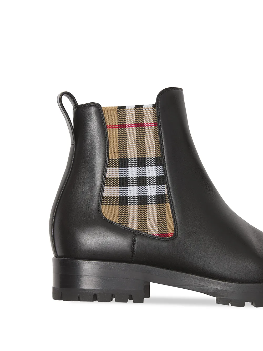 Ботинки челси с клетчатой вставкой BURBERRY, черный