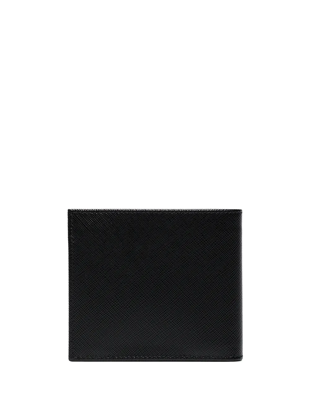 Сафьяновая кожа, два сложения, треугольный эмалированный логотип, тисненый логотип внутри и внутренние отделения для карт. Цвет: черный.