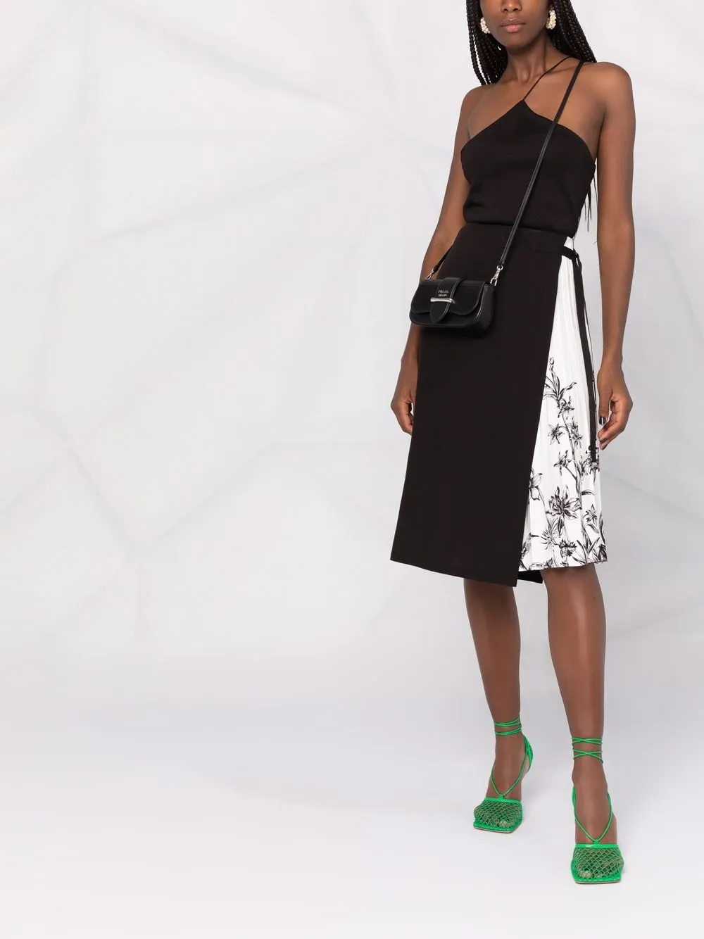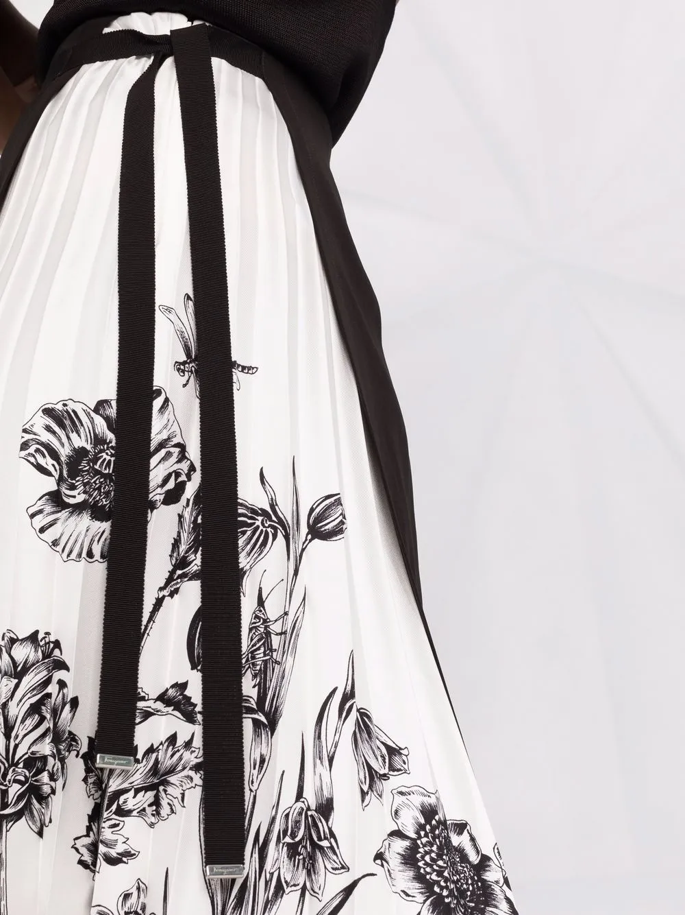 Черный модель на запах завышенная талия плиссированная вставка с цветочным принтом завязки сбоку асимметричный подол