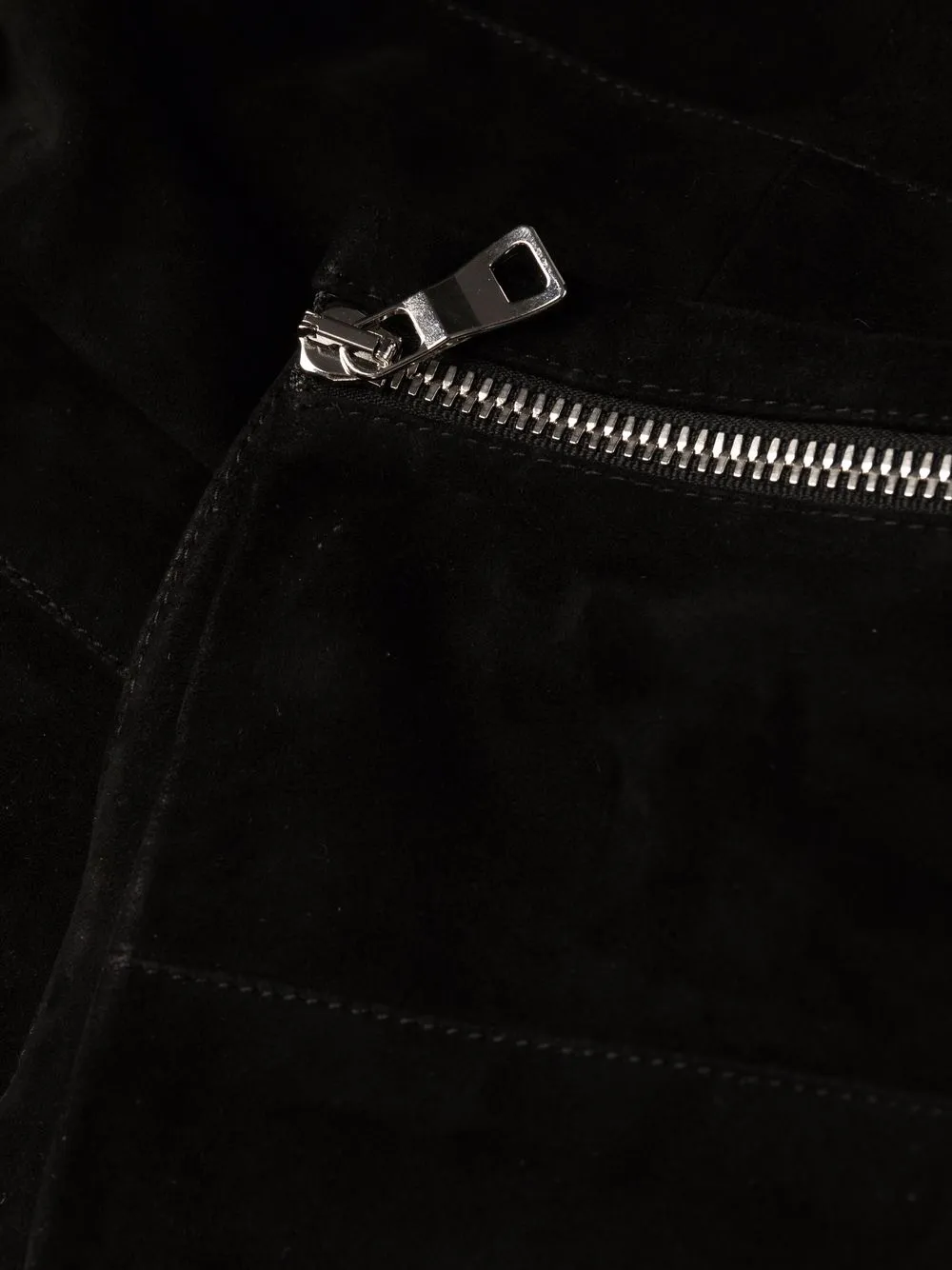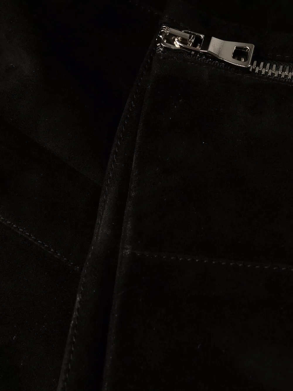 Завышенная талия, однотонная расцветка, застежка на молнии сбоку, серебристая фурнитура и узкий крой. Цвет: черный.