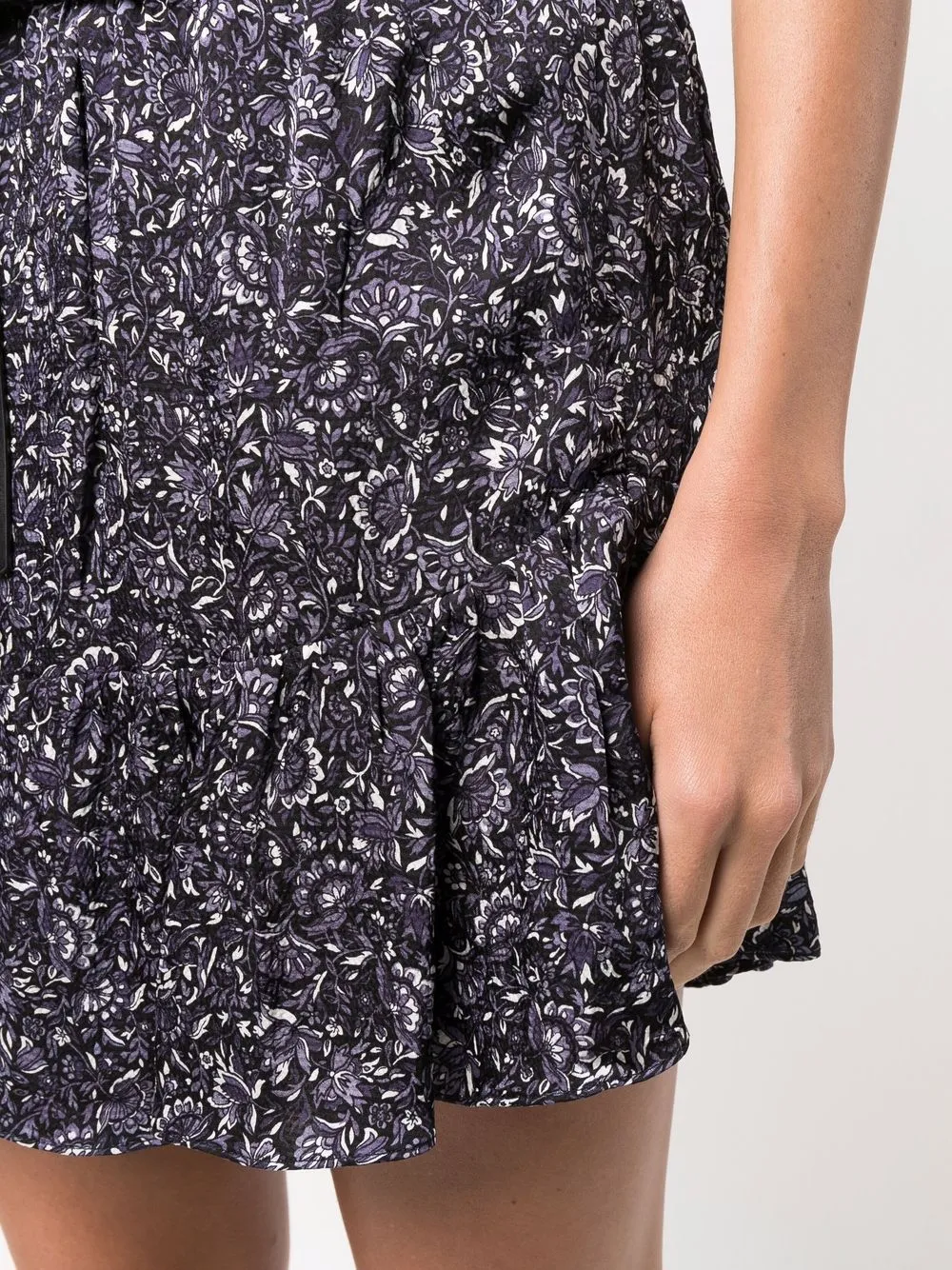 Сплошной цветочный принт, вставки с оборками, ремень на талии и петли для ремня. Цвет: фиолетовый.