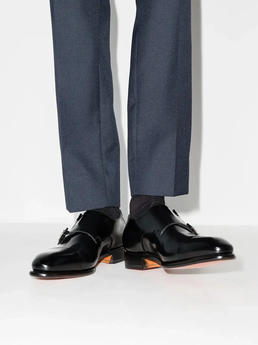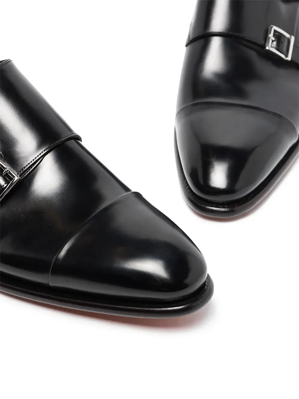 Черный, Кожа, стелька с логотипом, серебристая фурнитура, застежка на пряжке, плоская кожаная подошва и миндалевидный носок.