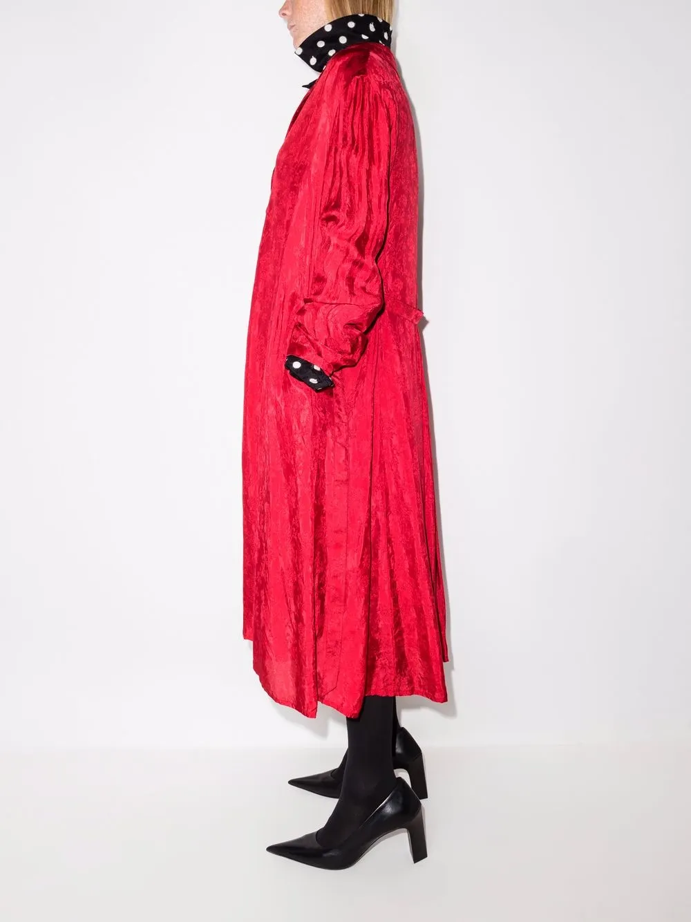 Двустороннее платье в горох с поясом BALENCIAGA, черный
