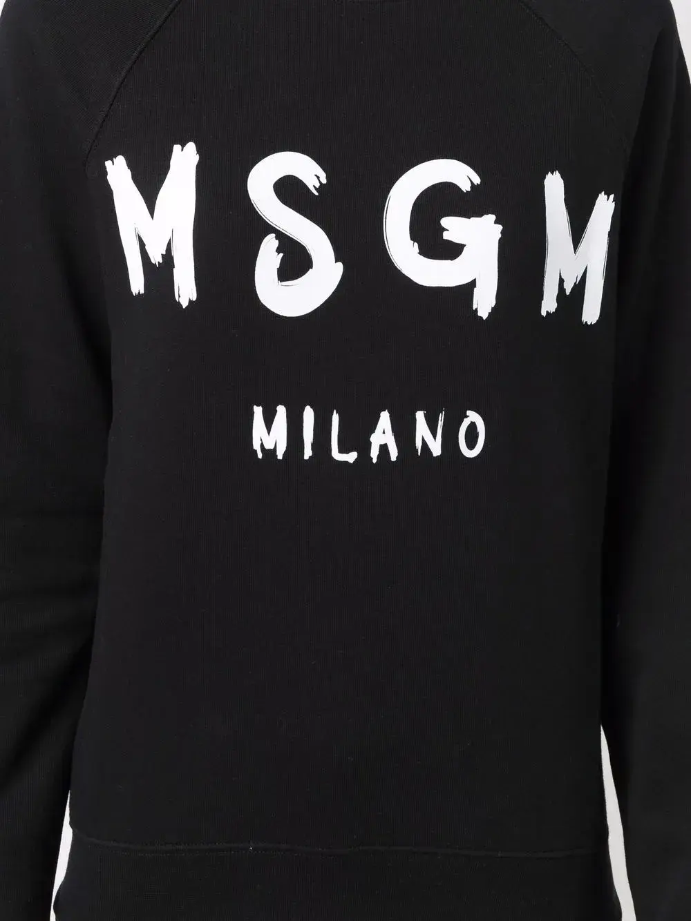 Принт с логотипом на груди, круглый вырез, длинные рукава реглан и прямой подол. Цвет: черный.