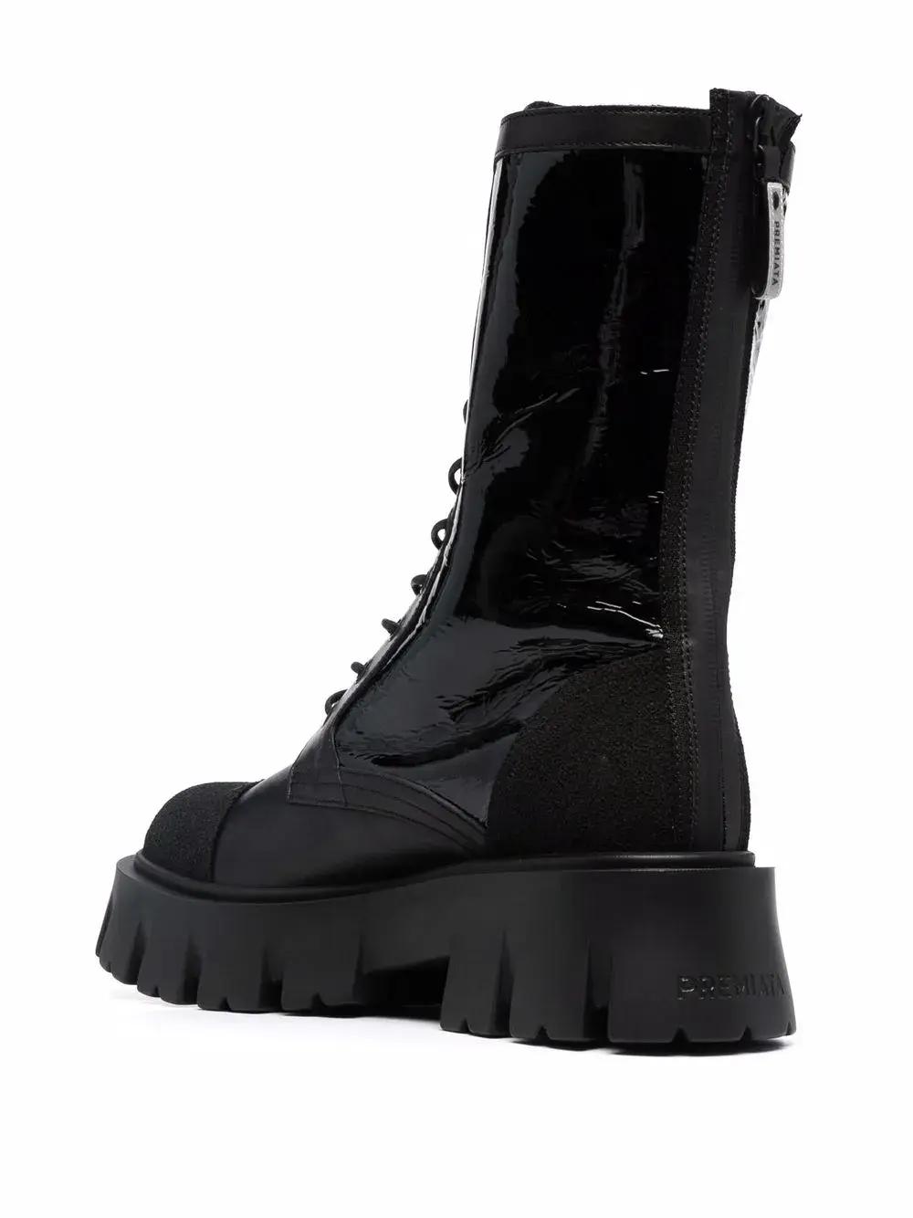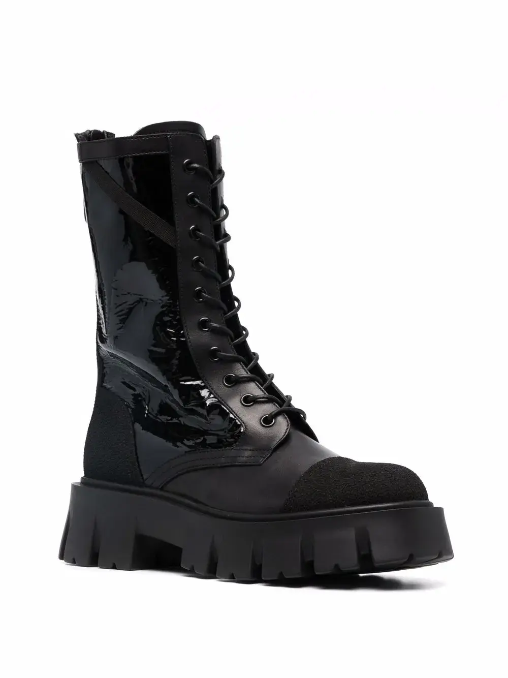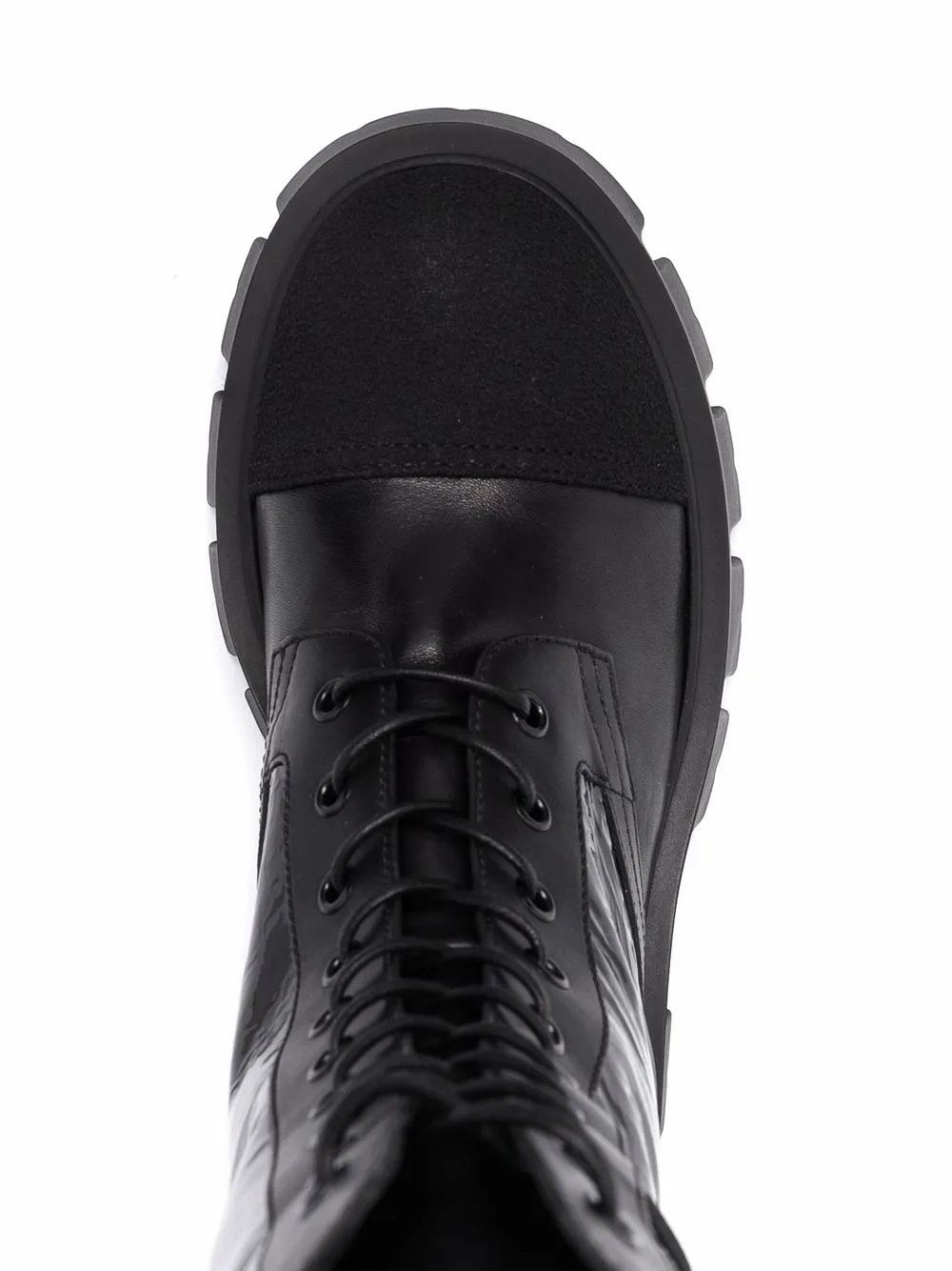 Контрастный носок, шнуровка спереди, массивная резиновая подошва c протектором и застежка на молнии сзади. Цвет: черный.