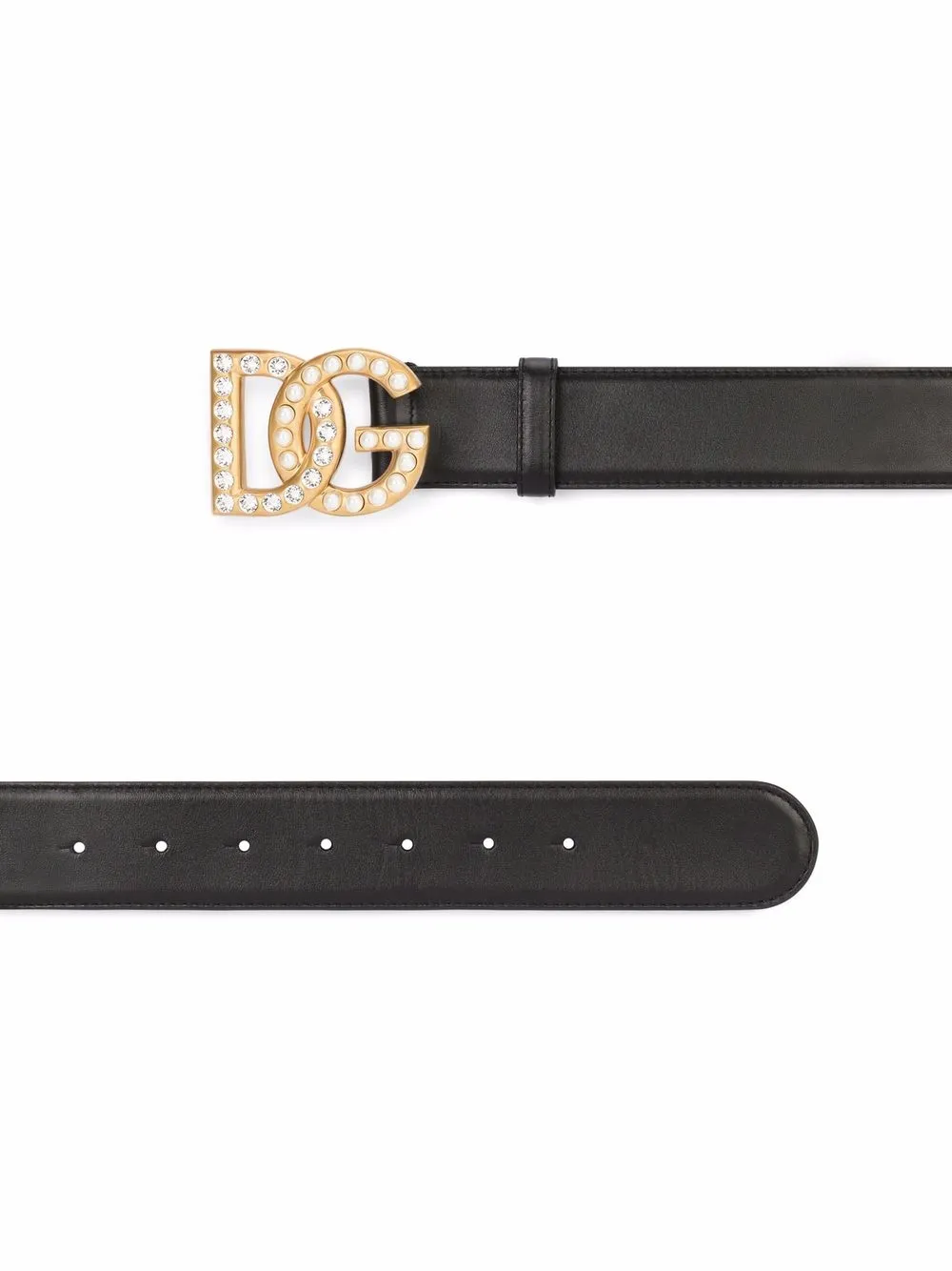 Ремень со стразами и логотипом DG DOLCE & GABBANA, черный