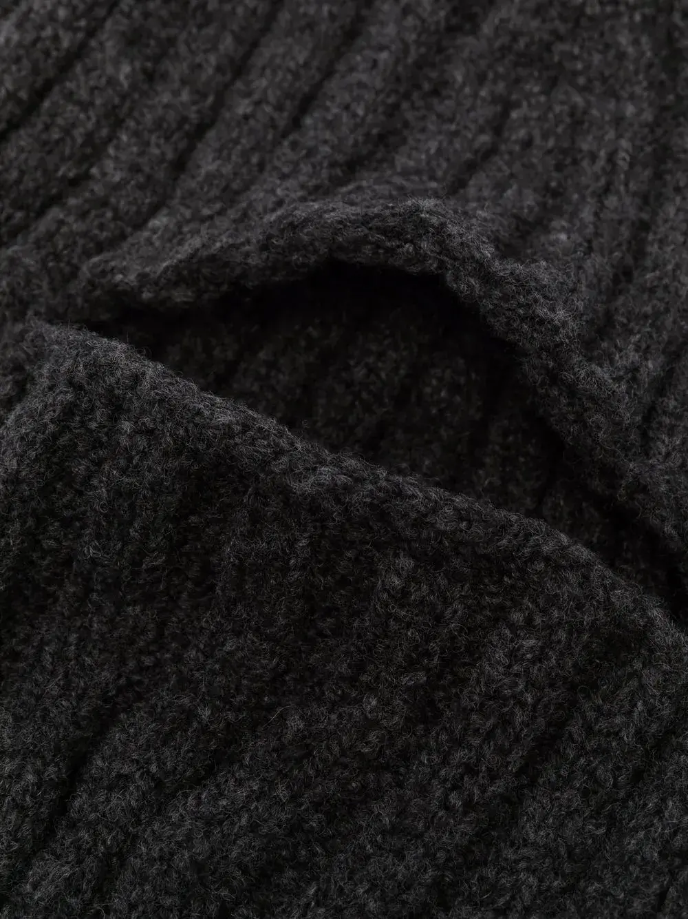 Трикотажный материал, трикотаж в крупный рубчик и разрез спереди. Цвет: черный.