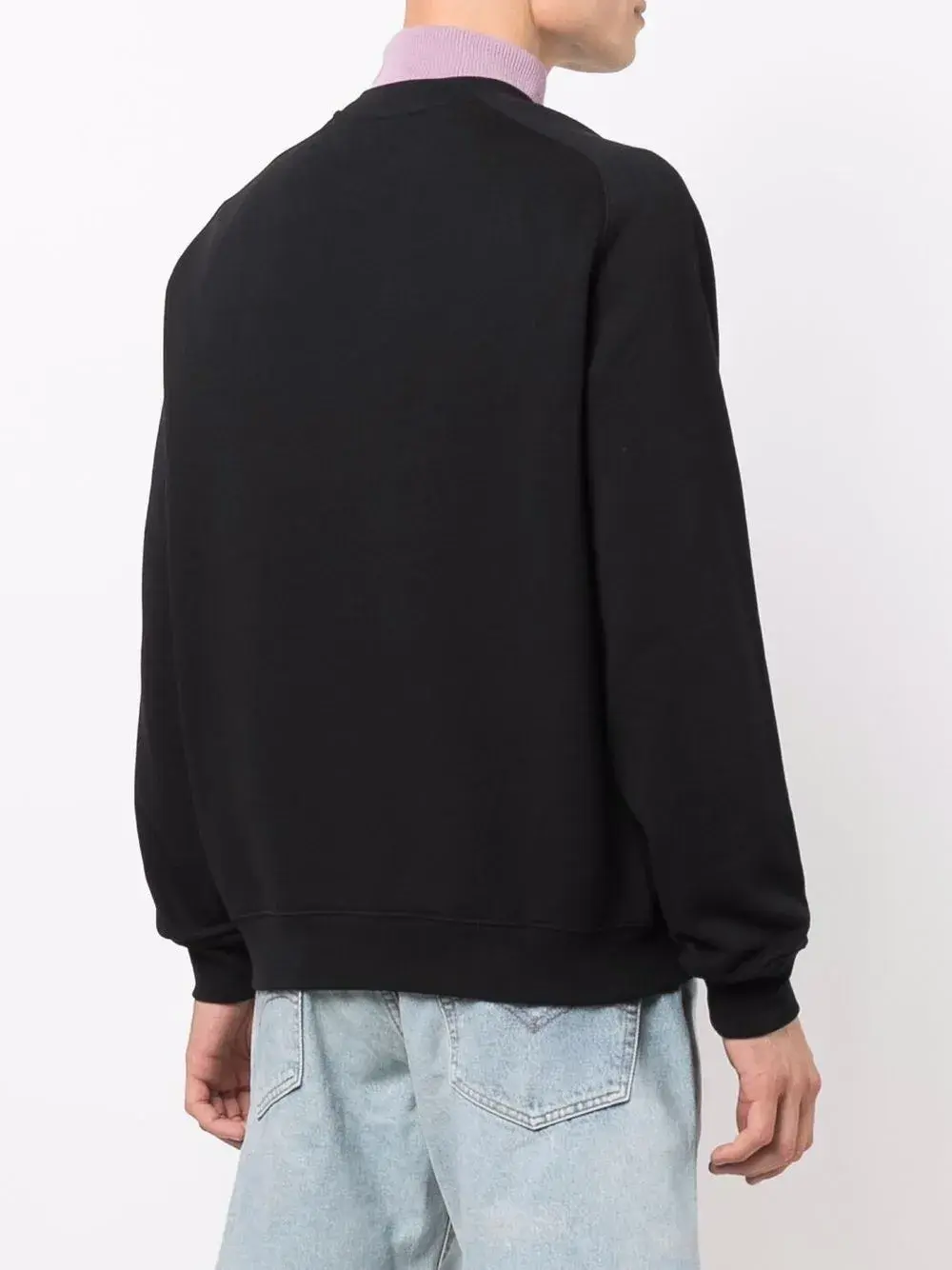 Детали в рубчик, логотип спереди, круглый вырез, длинные рукава и прямой подол. Цвет: черный.