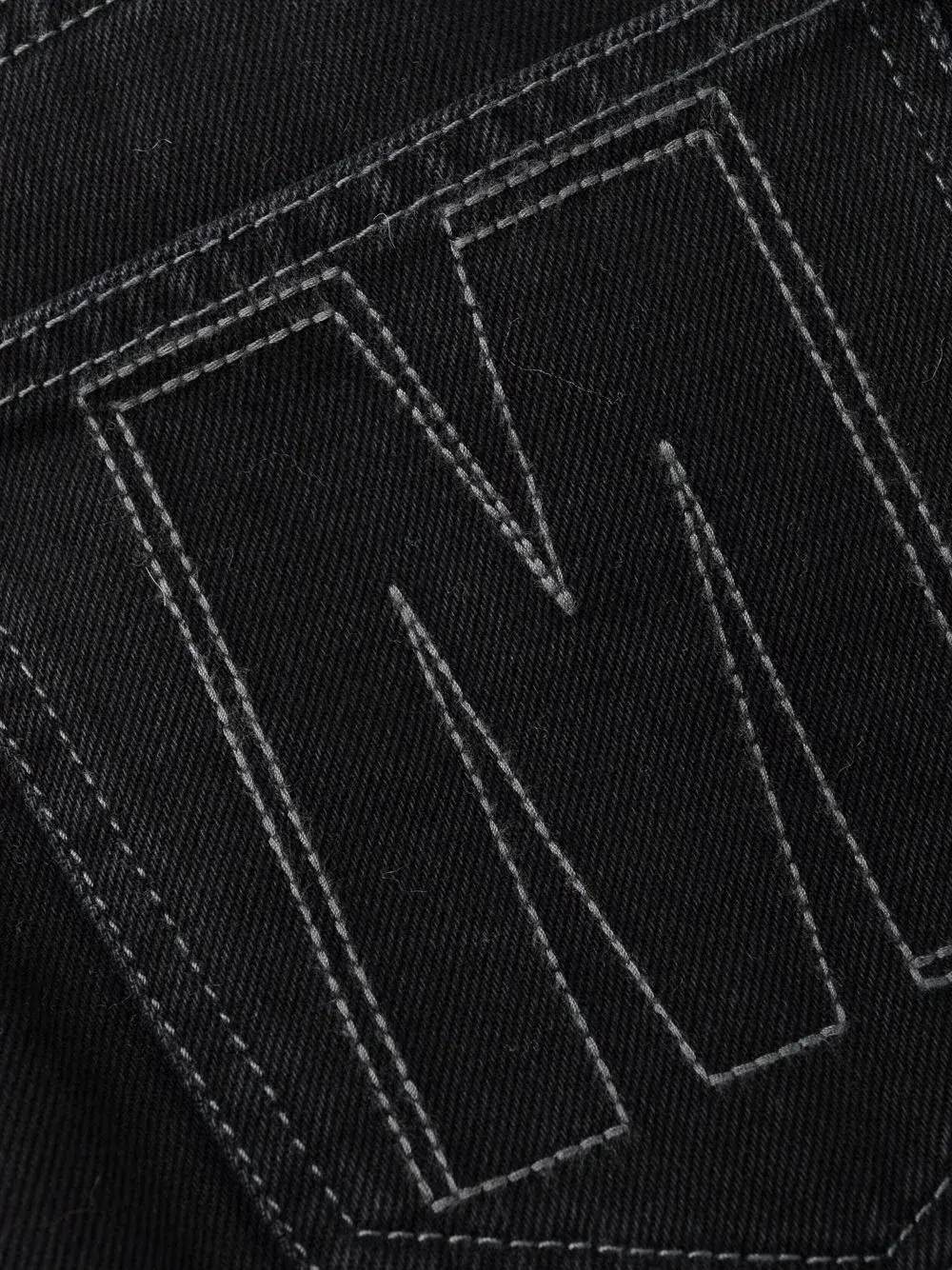 Вышитый логотип сбоку, вышитый логотип сзади, нашивка с логотипом сзади, застежка на молнии и пуговице спереди и классическая пятикарманная модель. Цвет: черный.