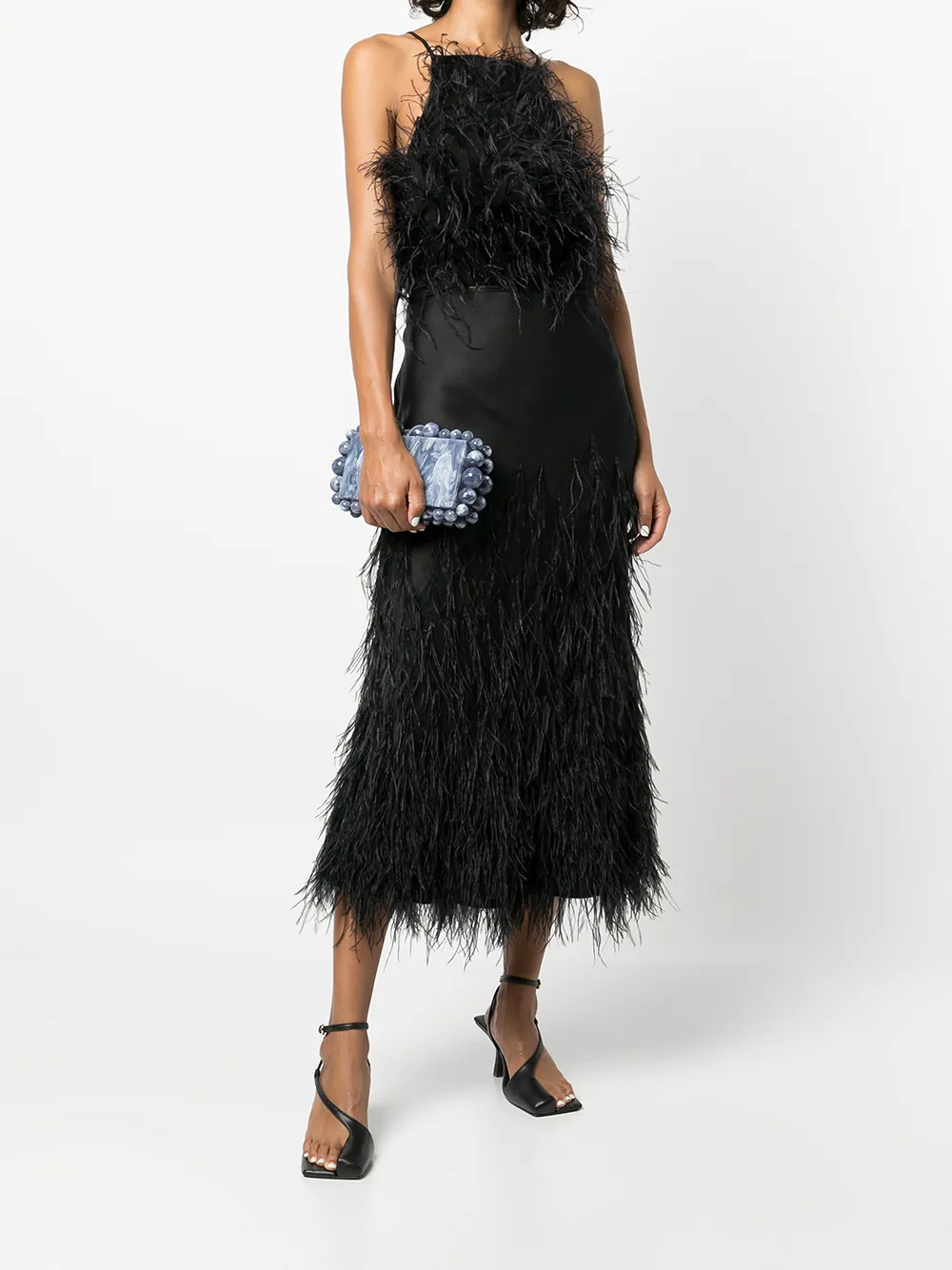 Перья, квадратный вырез, без рукавов и перекрестные ремешки. Цвет: черный.