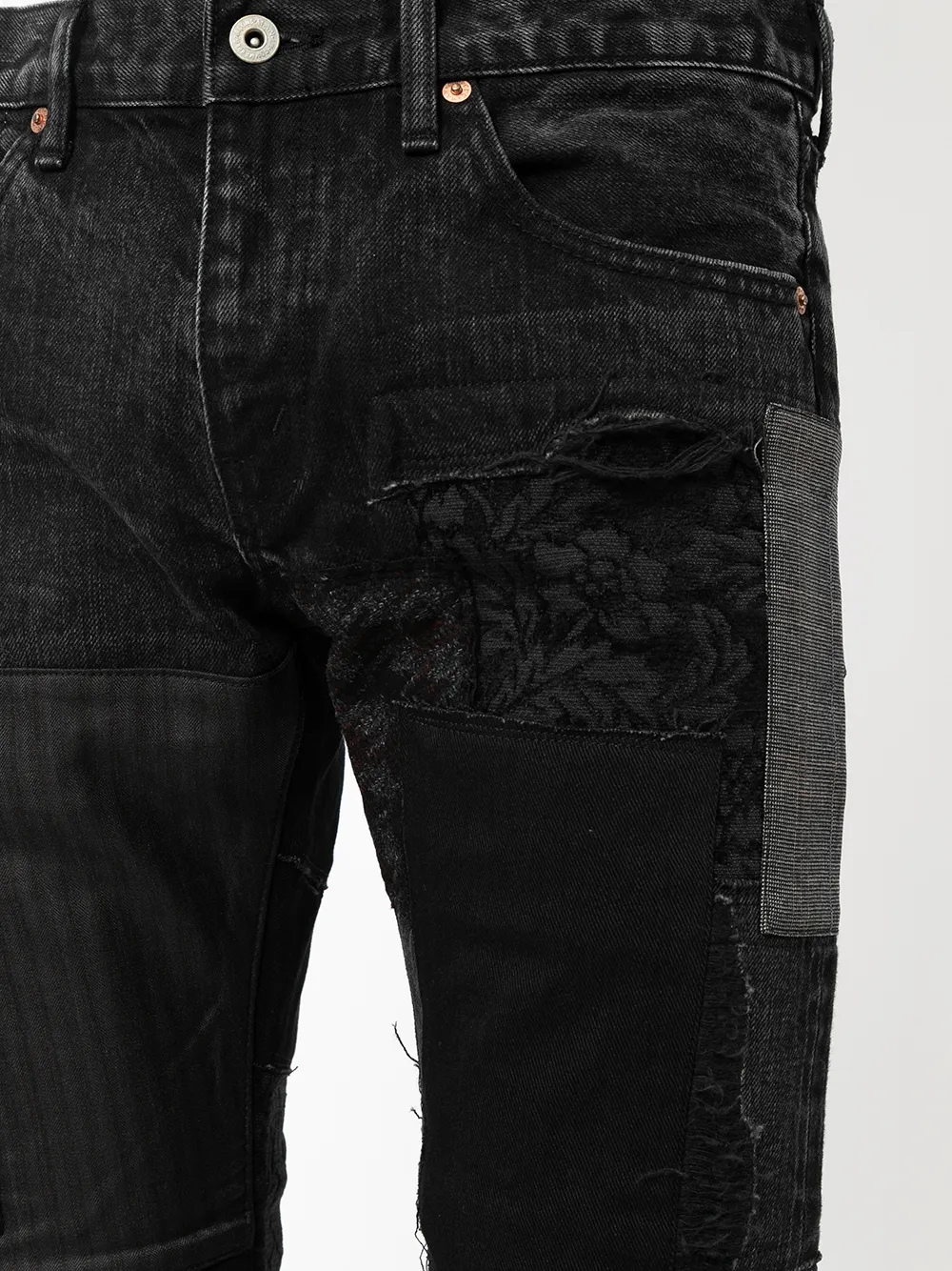 Укороченные джинсы в технике пэчворк Junya Watanabe MAN, черный