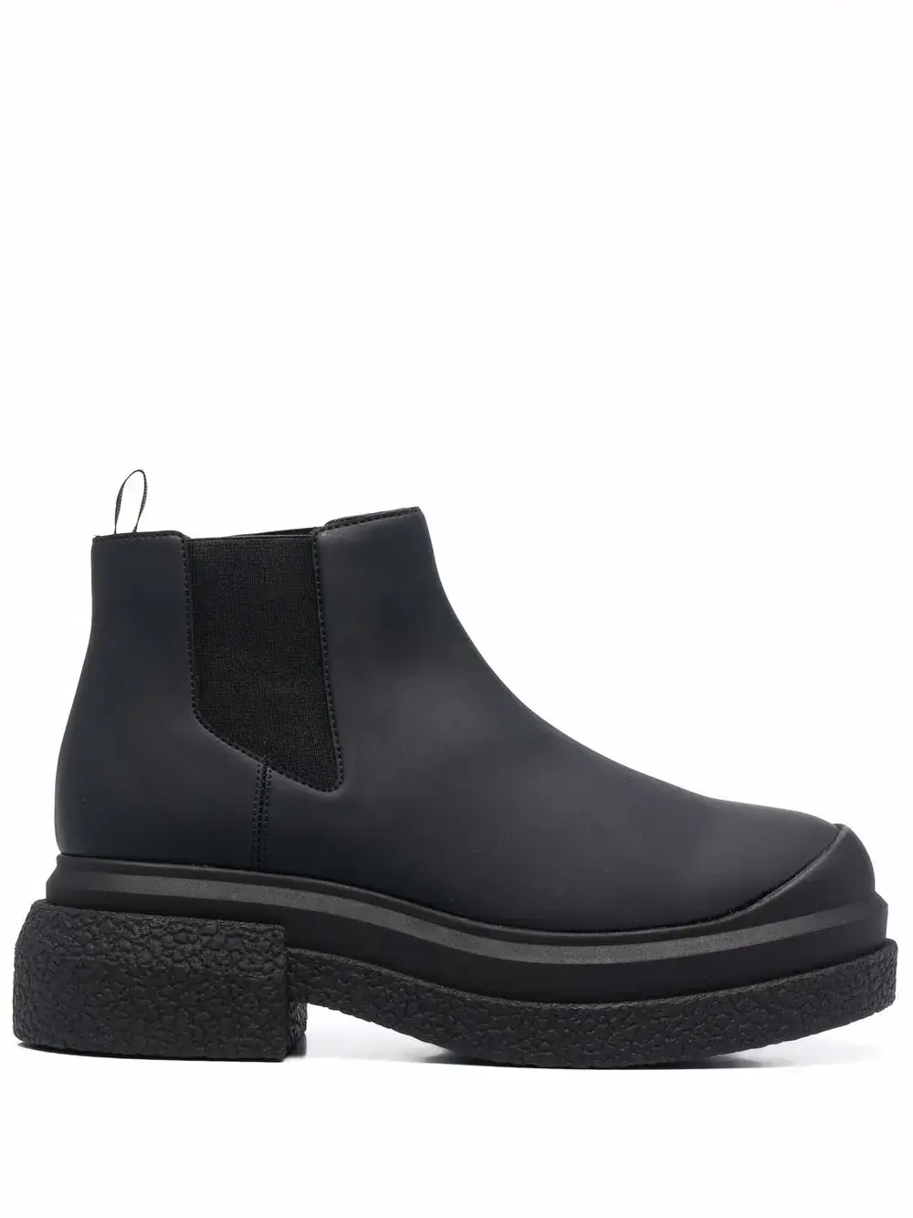 Закругленный носок, эластичные боковые панели, стелька с логотипом и подошва на платформе.